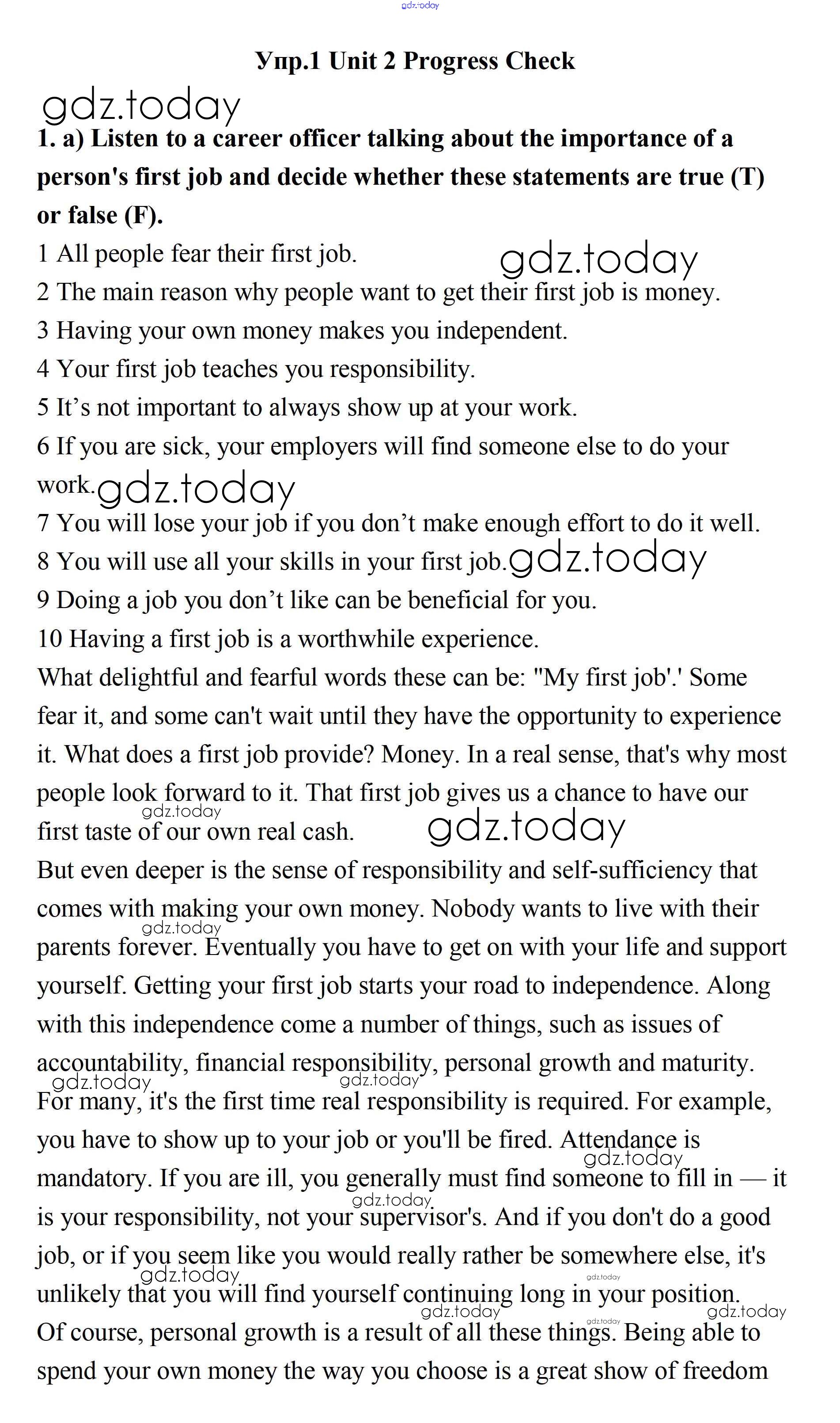 На страницах сайта gdz.today вы найдете учебный и вспомогательный материал, направленный на улучшения знаний школьной программы. ГДЗ - онлайн мир знаний Progress Check Решение. Unit 2. Your Dream Job 1 Учебнику по Английскому языку для 11 класса Биболетова, Бабушис Дрофа Enjoy English 2017
