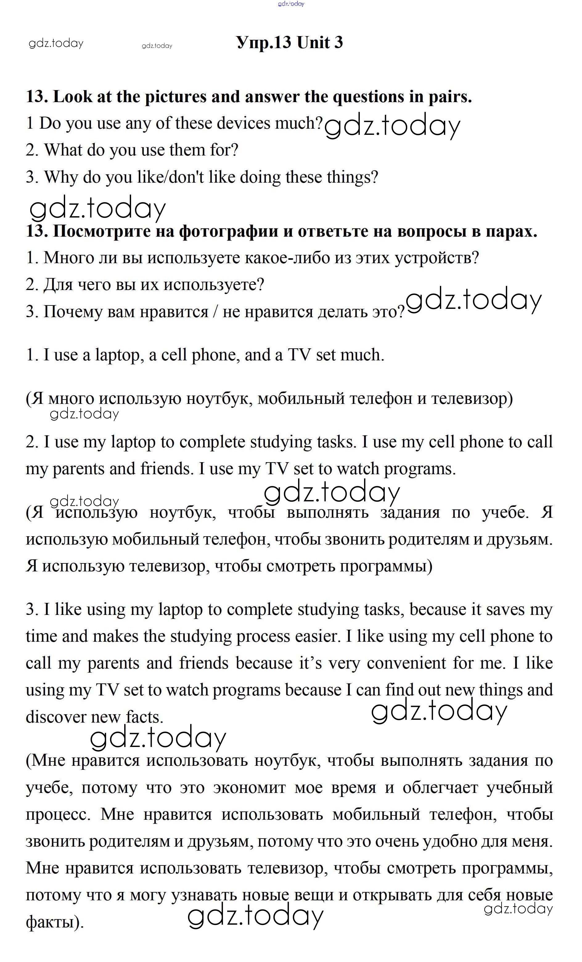 На страницах сайта gdz.today вы найдете учебный и вспомогательный материал, направленный на улучшения знаний школьной программы. ГДЗ - онлайн мир знаний Решение. Unit 3. New Technological World 13 Учебнику по Английскому языку для 11 класса Биболетова, Бабушис Дрофа Enjoy English 2017