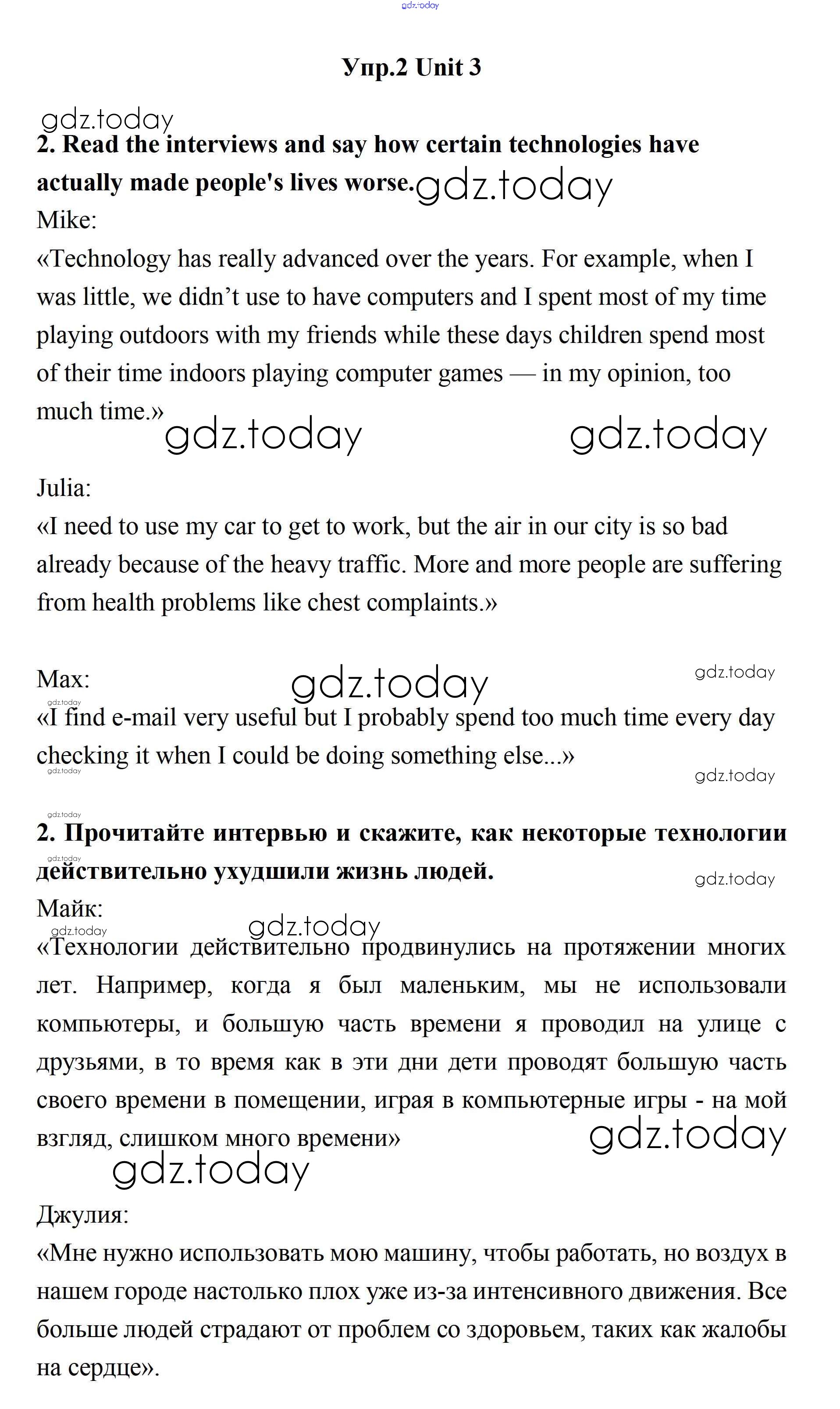 На страницах сайта gdz.today вы найдете учебный и вспомогательный материал, направленный на улучшения знаний школьной программы. ГДЗ - онлайн мир знаний Решение. Unit 3. New Technological World 2 Учебнику по Английскому языку для 11 класса Биболетова, Бабушис Дрофа Enjoy English 2017