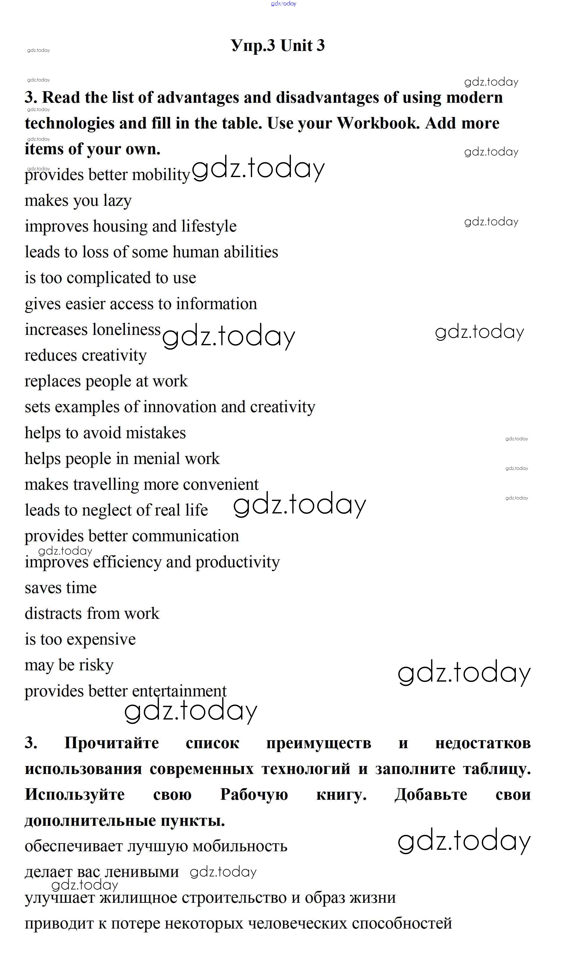На страницах сайта gdz.today вы найдете учебный и вспомогательный материал, направленный на улучшения знаний школьной программы. ГДЗ - онлайн мир знаний Решение. Unit 3. New Technological World 3 Учебнику по Английскому языку для 11 класса Биболетова, Бабушис Дрофа Enjoy English 2017