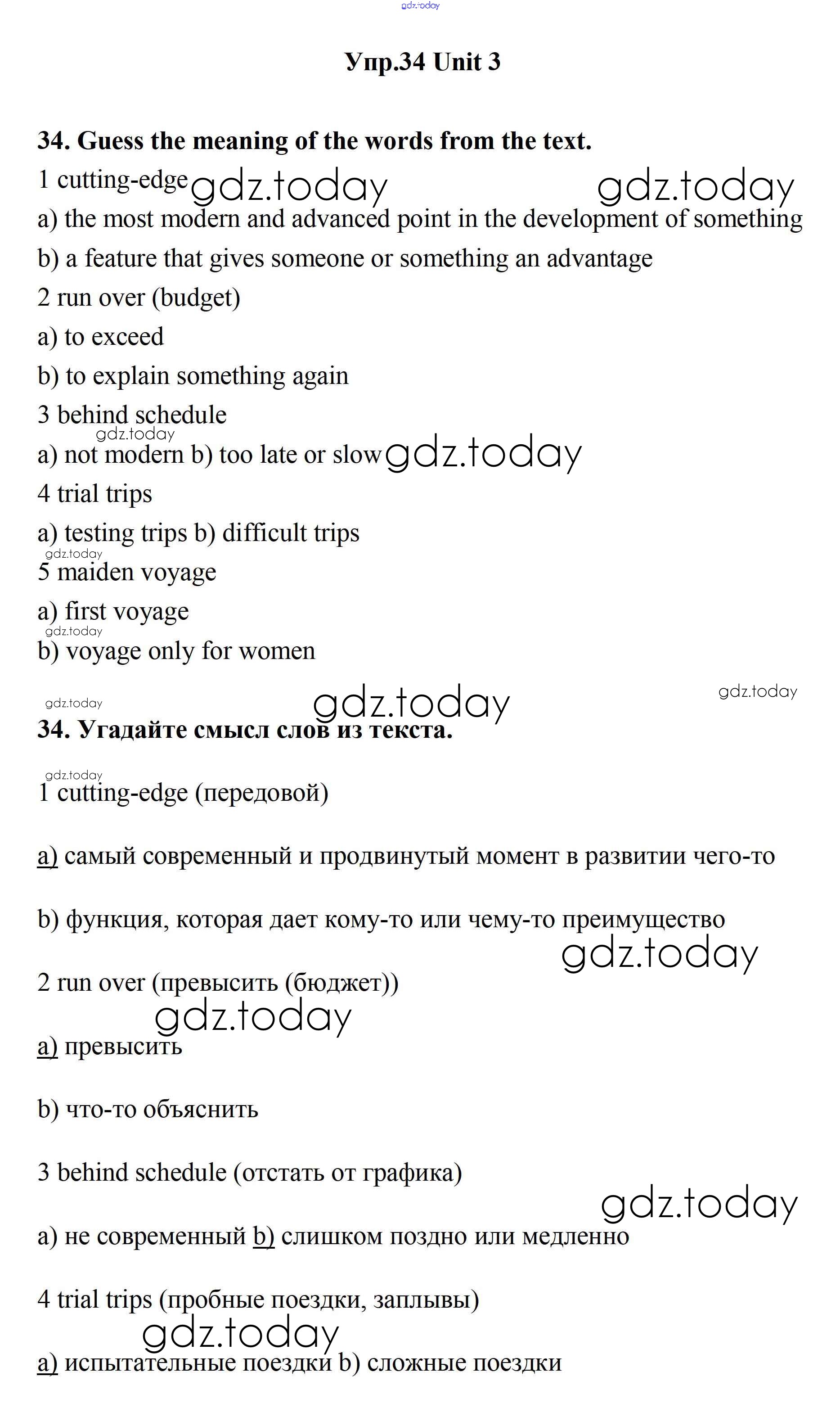 На страницах сайта gdz.today вы найдете учебный и вспомогательный материал, направленный на улучшения знаний школьной программы. ГДЗ - онлайн мир знаний Решение. Unit 3. New Technological World 34 Учебнику по Английскому языку для 11 класса Биболетова, Бабушис Дрофа Enjoy English 2017