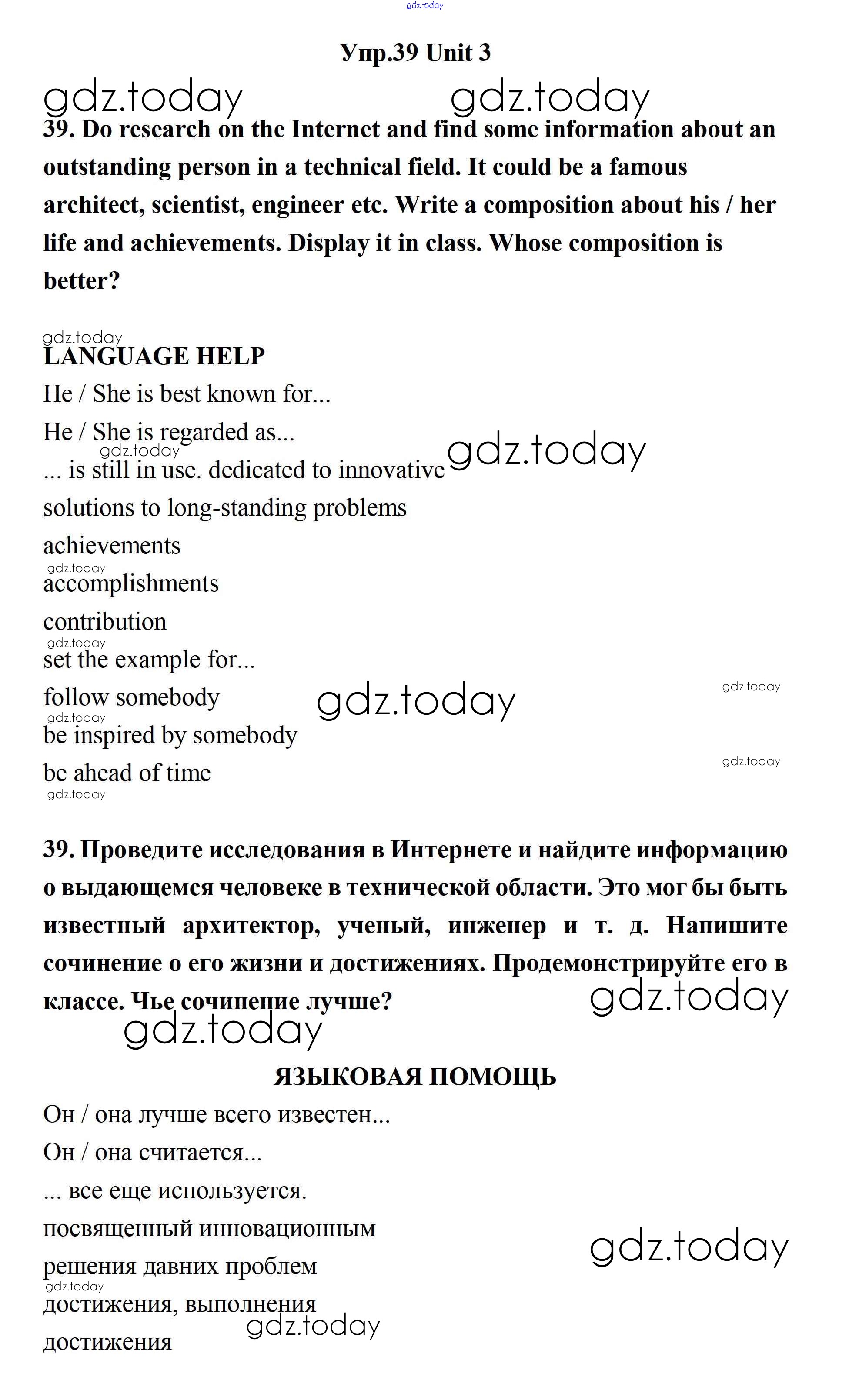 На страницах сайта gdz.today вы найдете учебный и вспомогательный материал, направленный на улучшения знаний школьной программы. ГДЗ - онлайн мир знаний Решение. Unit 3. New Technological World 39 Учебнику по Английскому языку для 11 класса Биболетова, Бабушис Дрофа Enjoy English 2017