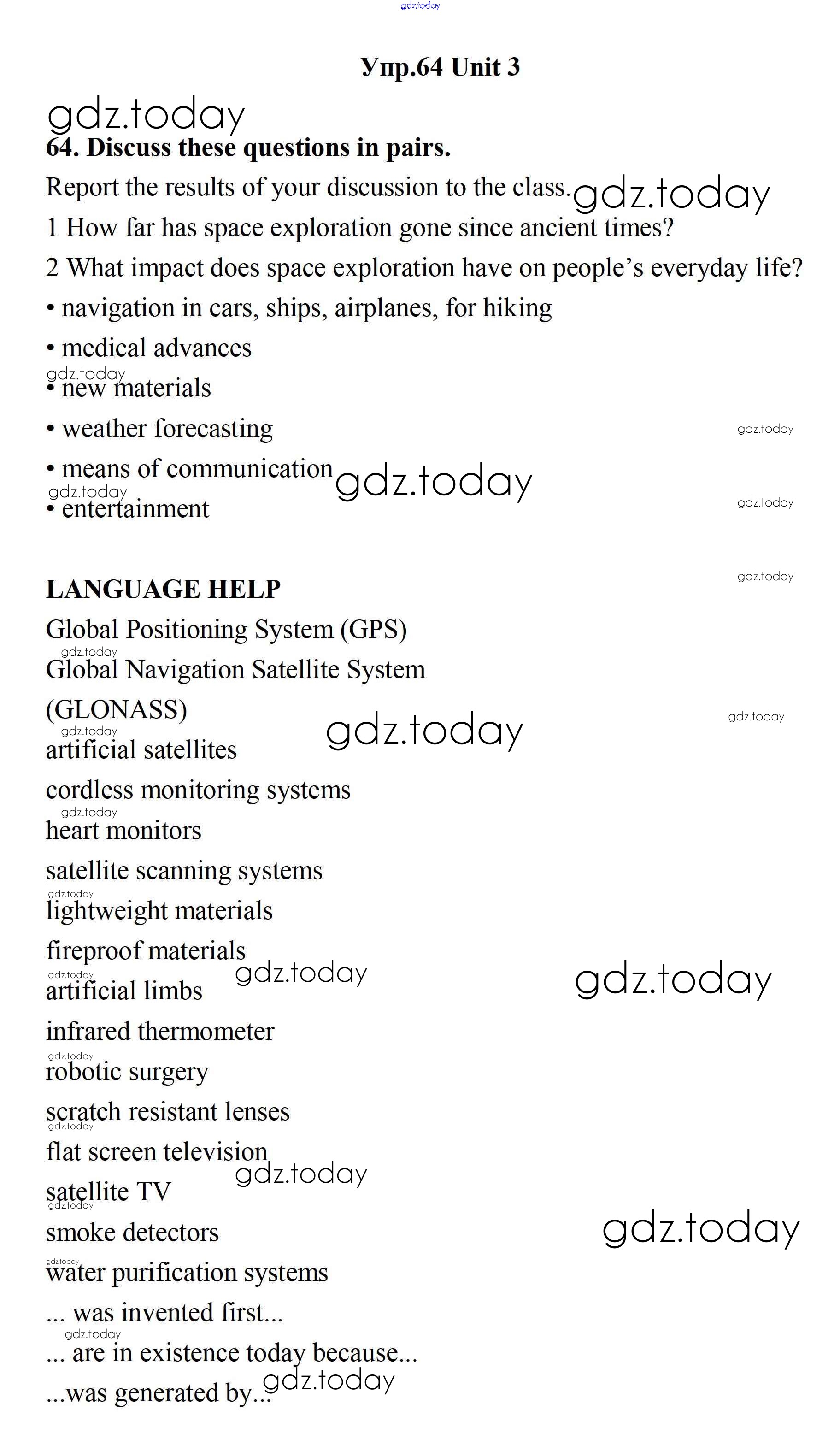 На страницах сайта gdz.today вы найдете учебный и вспомогательный материал, направленный на улучшения знаний школьной программы. ГДЗ - онлайн мир знаний Решение. Unit 3. New Technological World 64 Учебнику по Английскому языку для 11 класса Биболетова, Бабушис Дрофа Enjoy English 2017