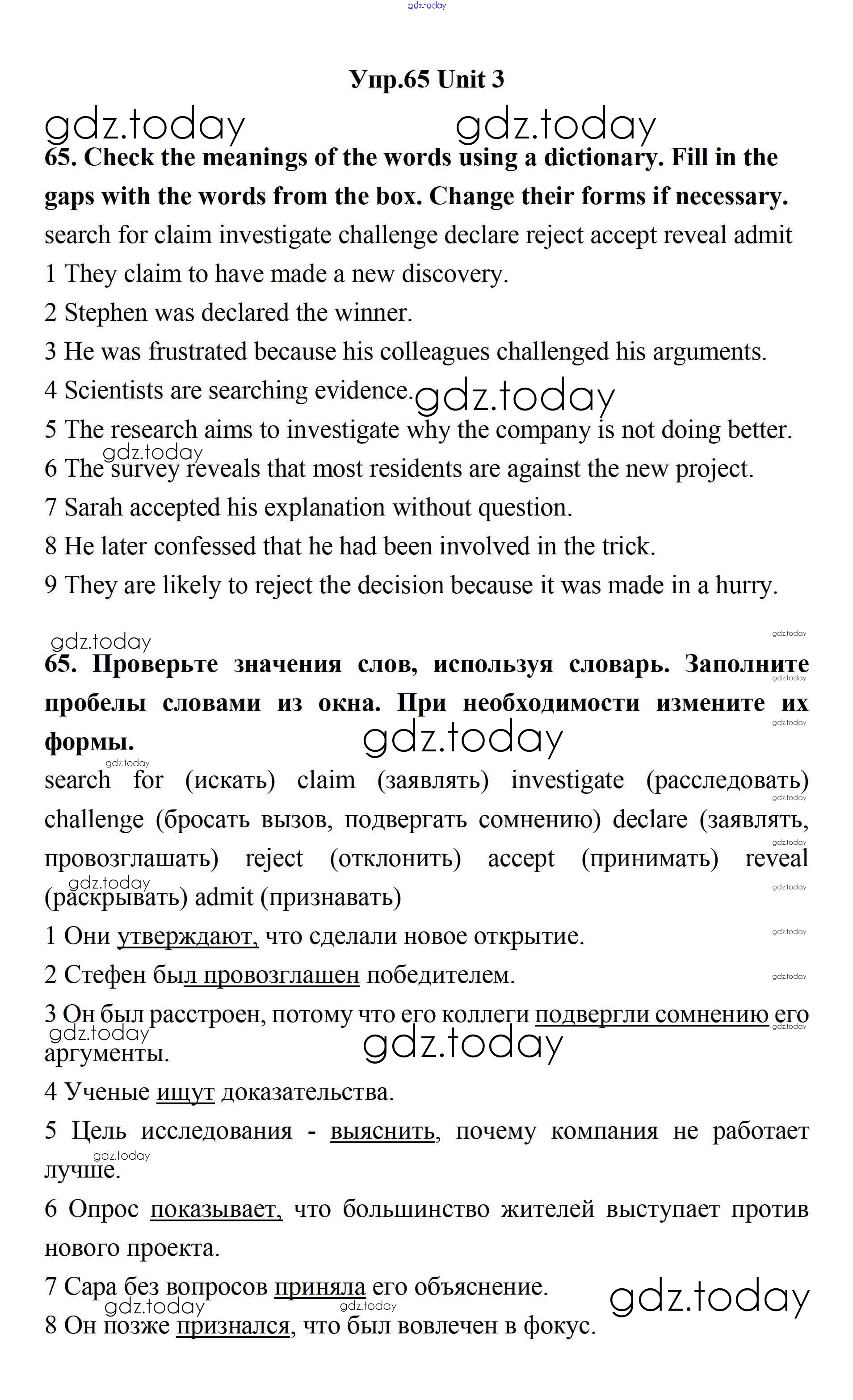 На страницах сайта gdz.today вы найдете учебный и вспомогательный материал, направленный на улучшения знаний школьной программы. ГДЗ - онлайн мир знаний Решение. Unit 3. New Technological World  65 Учебнику по Английскому языку для 11 класса Биболетова, Бабушис  Дрофа Enjoy English 2017