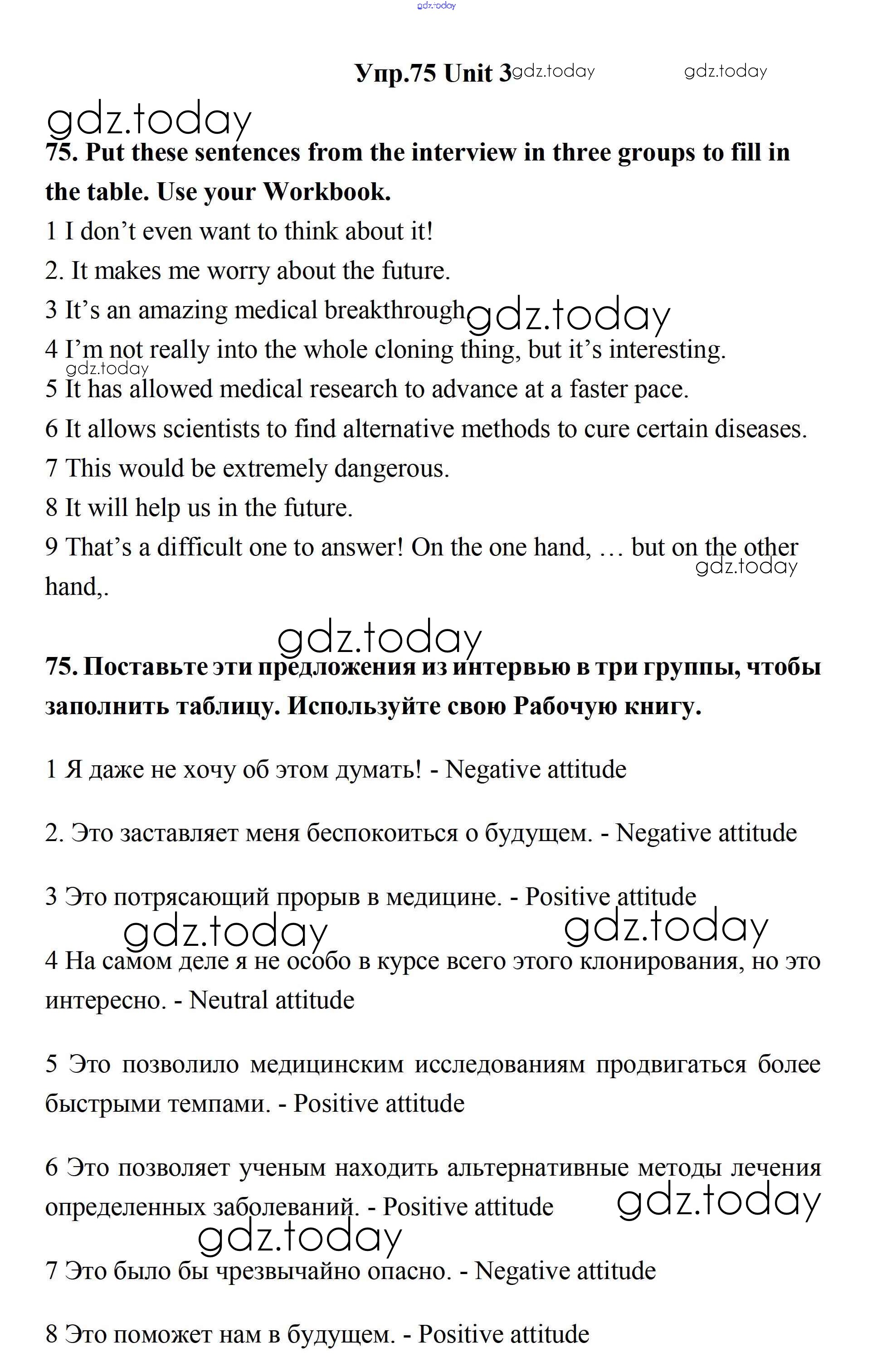 На страницах сайта gdz.today вы найдете учебный и вспомогательный материал, направленный на улучшения знаний школьной программы. ГДЗ - онлайн мир знаний Решение. Unit 3. New Technological World  75 Учебнику по Английскому языку для 11 класса Биболетова, Бабушис  Дрофа Enjoy English 2017