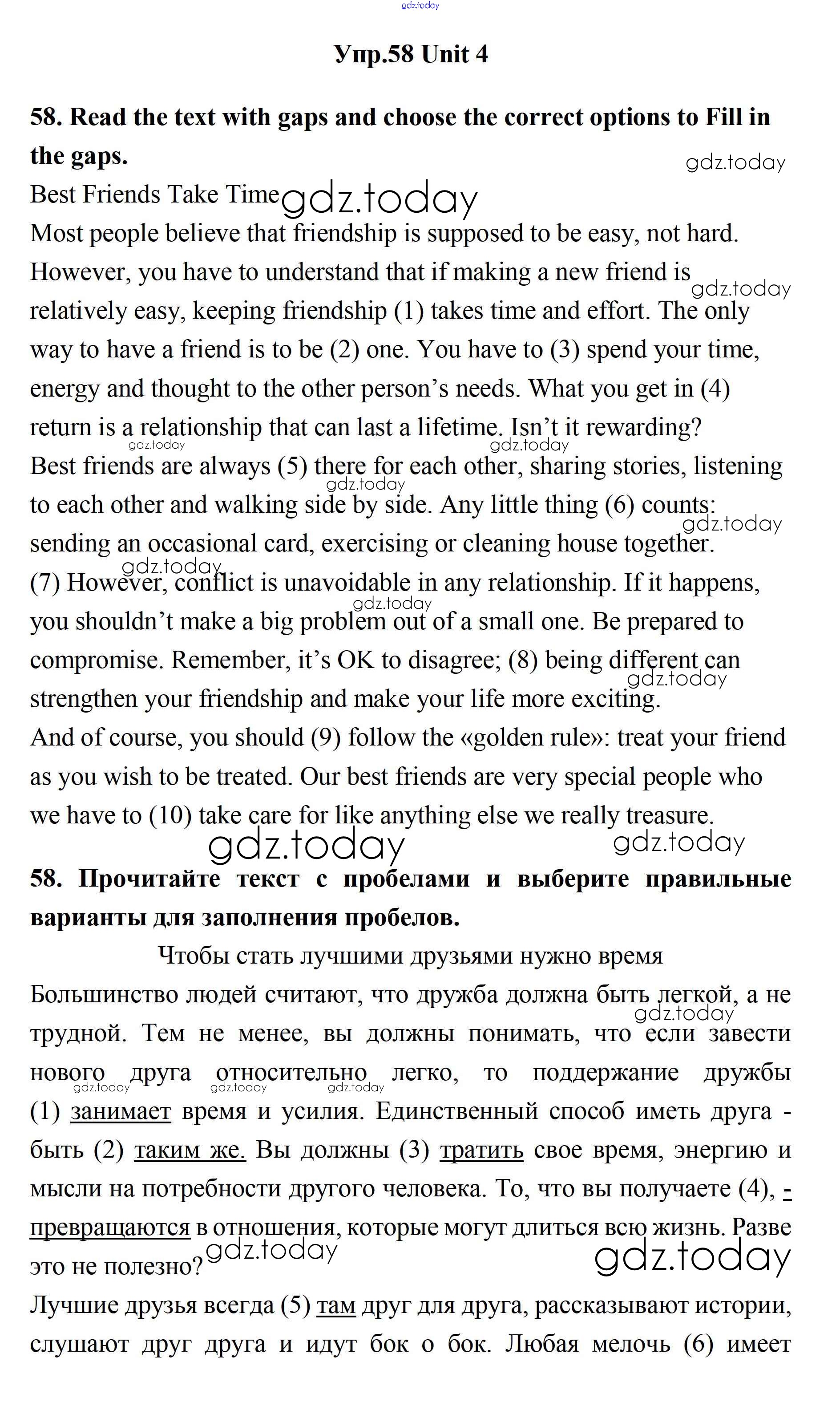 Ответы к Решение. Unit 4. What Are Your Whereаbouts? 58 Учебнику по Английскому языку для 11 класса Биболетова, Бабушис Дрофа Enjoy English 2017