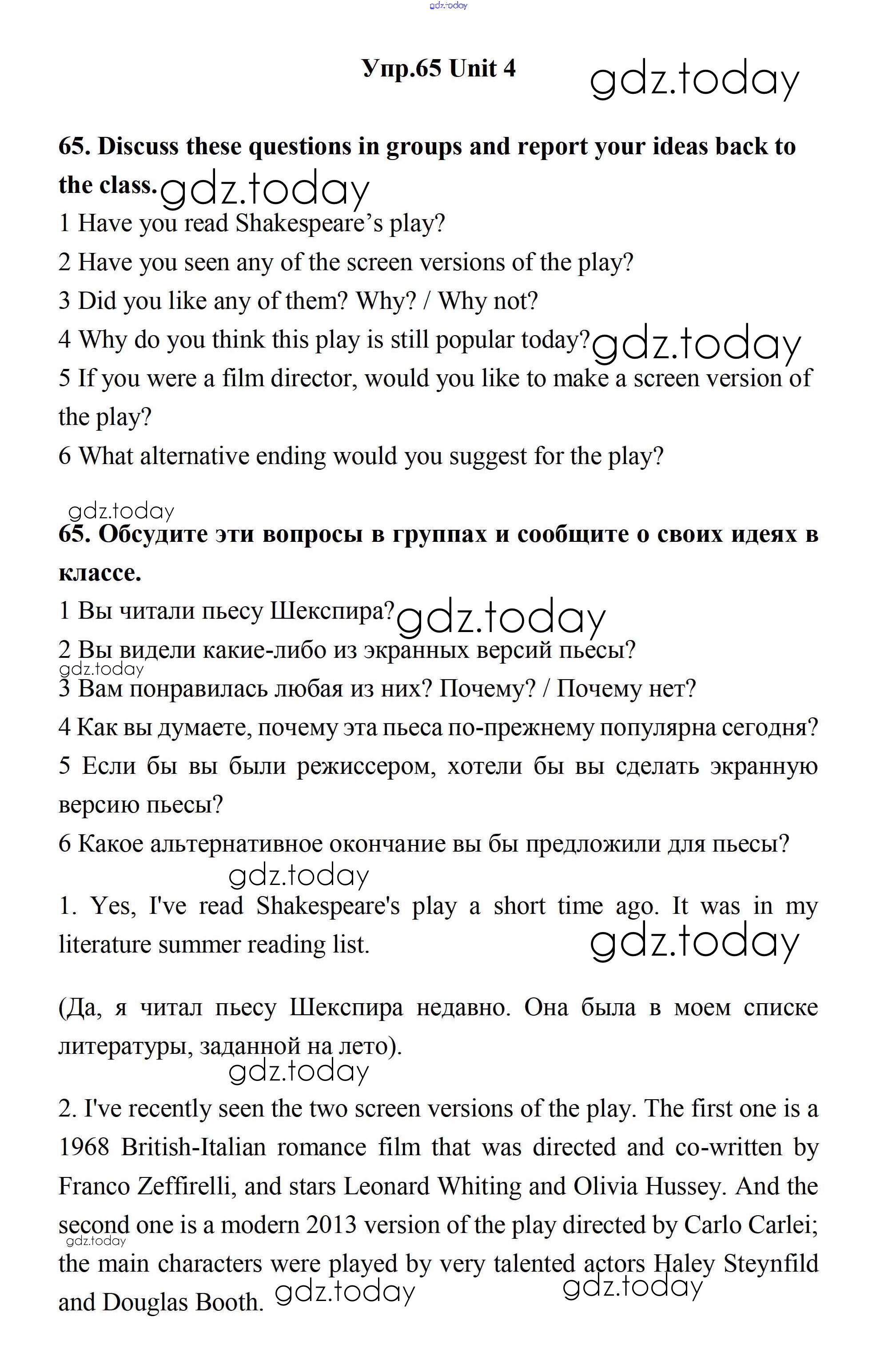 Ответы к Решение. Unit 4. What Are Your Whereаbouts?  65 Учебнику по Английскому языку для 11 класса Биболетова, Бабушис  Дрофа Enjoy English 2017