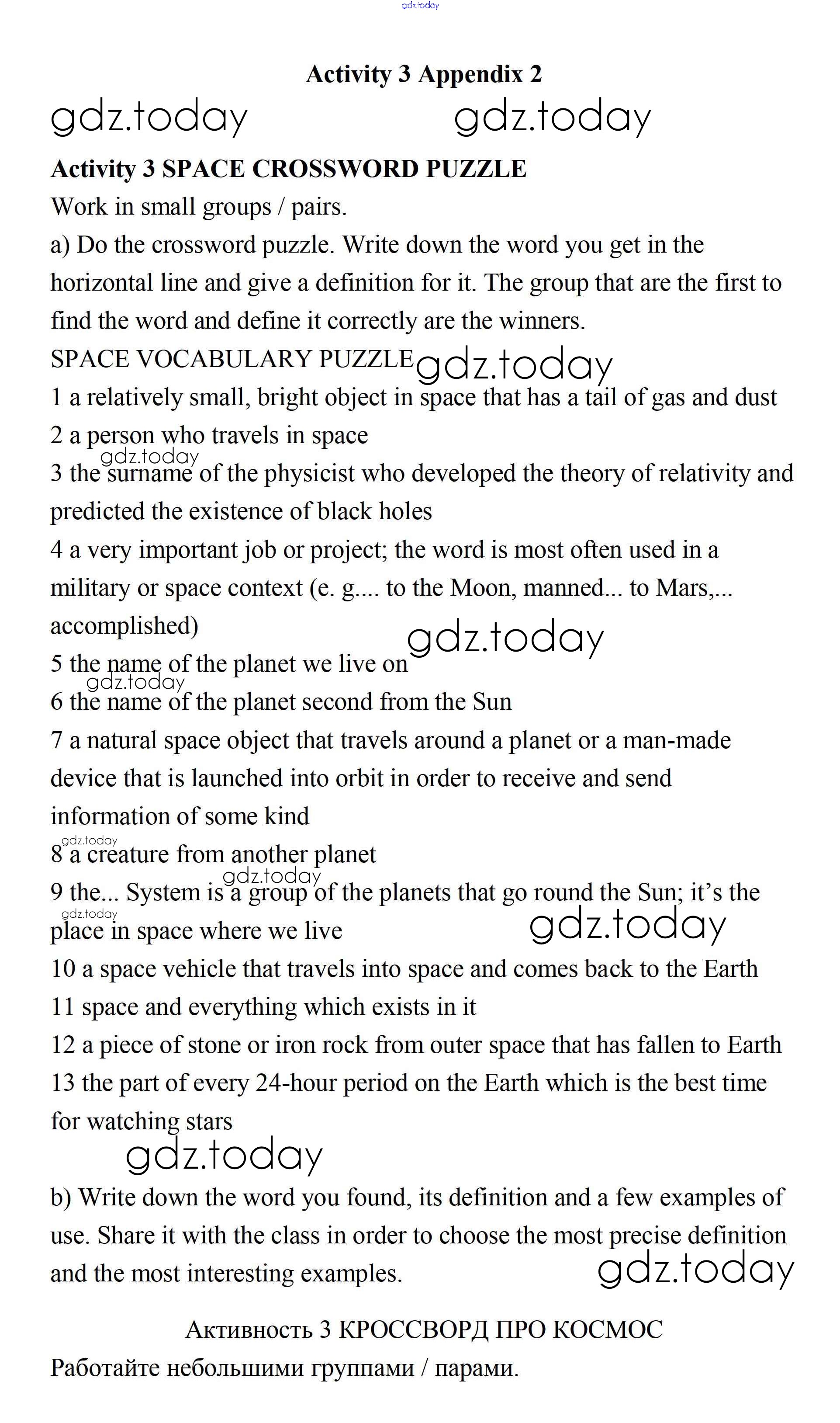 На страницах сайта gdz.today вы найдете учебный и вспомогательный материал, направленный на улучшения знаний школьной программы. ГДЗ - онлайн мир знаний Решение. Appendix 1  Activity 3 Учебнику по Английскому языку для 11 класса Биболетова, Бабушис  Дрофа Enjoy English 2017