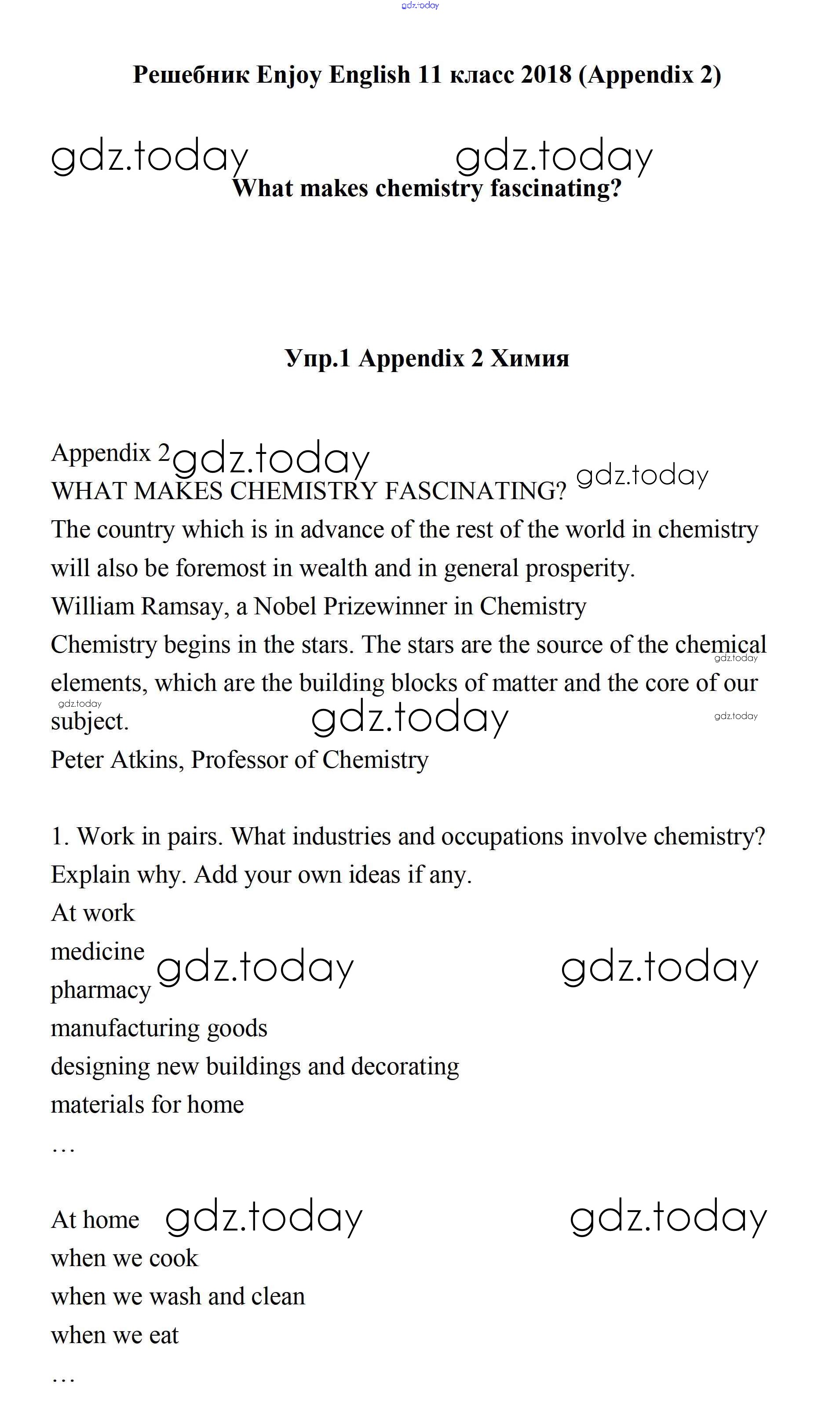 Ответы к What makes chemistry fascinating? Решение. Appendix 2 1 Учебнику по Английскому языку для 11 класса Биболетова, Бабушис Дрофа Enjoy English 2017