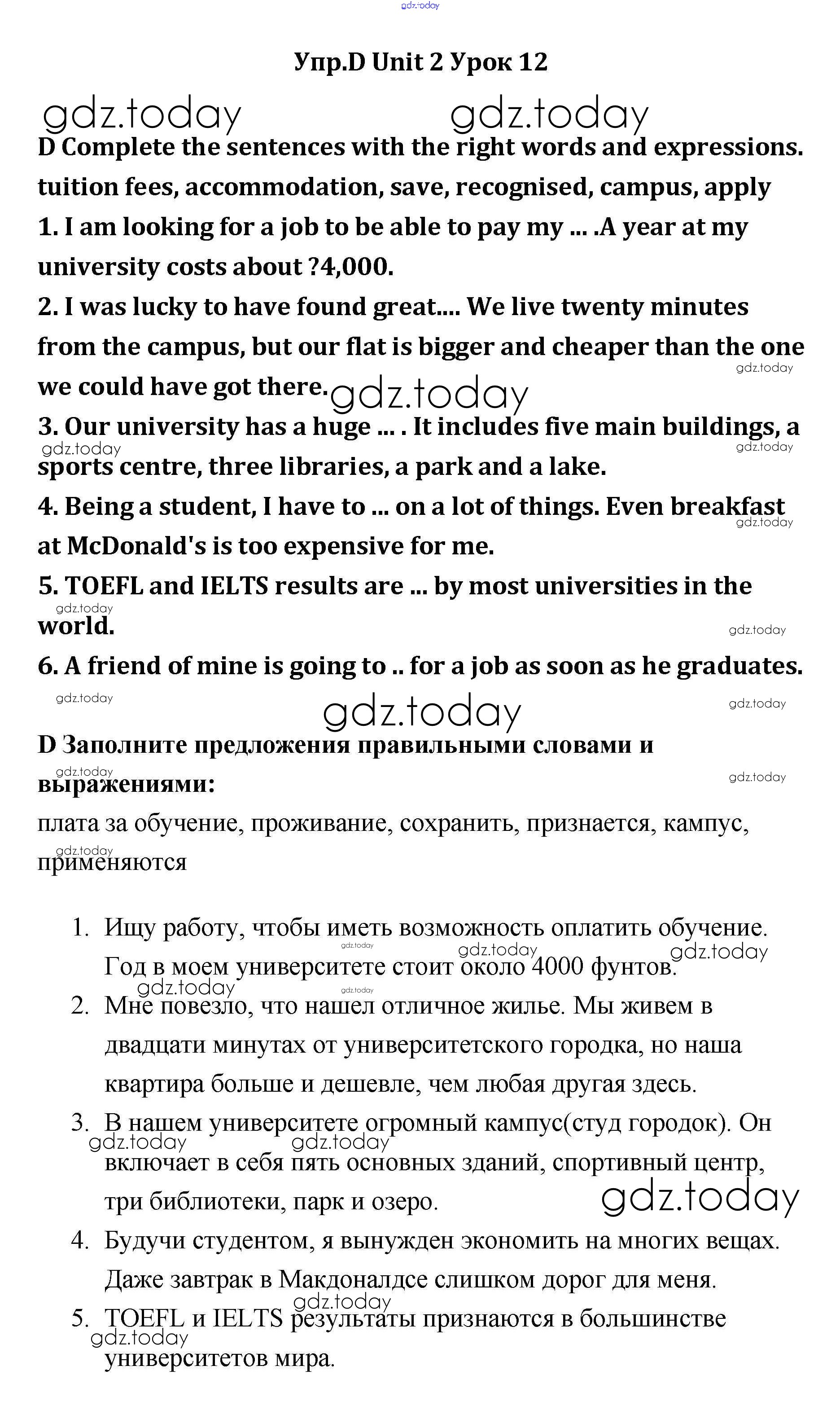 На страницах сайта gdz.today вы найдете учебный и вспомогательный материал, направленный на улучшения знаний школьной программы. ГДЗ - онлайн мир знаний Lesson 1-2 Решение к Unit 2 D Учебнику по Английскому языку для 11 класса Кауфман Титул Happy English 2014