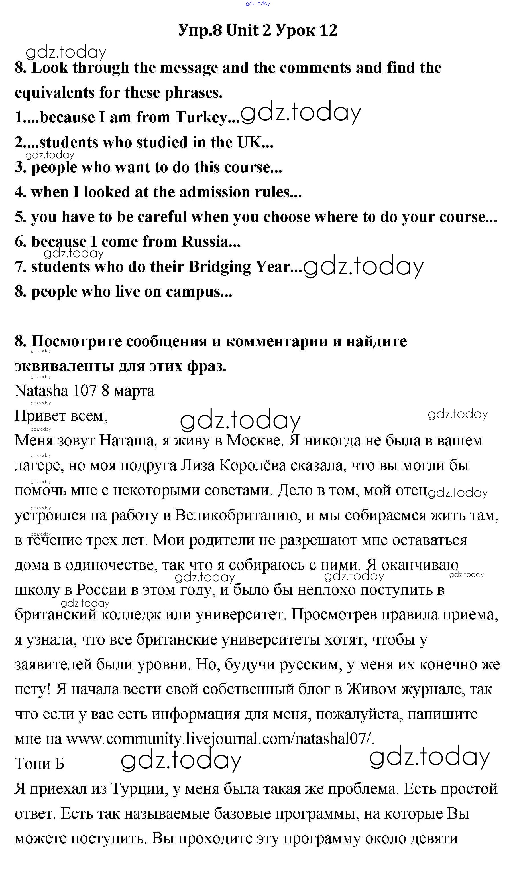 На страницах сайта gdz.today вы найдете учебный и вспомогательный материал, направленный на улучшения знаний школьной программы. ГДЗ - онлайн мир знаний Lesson 1-2 Решение к Unit 2 8 Учебнику по Английскому языку для 11 класса Кауфман Титул Happy English 2014