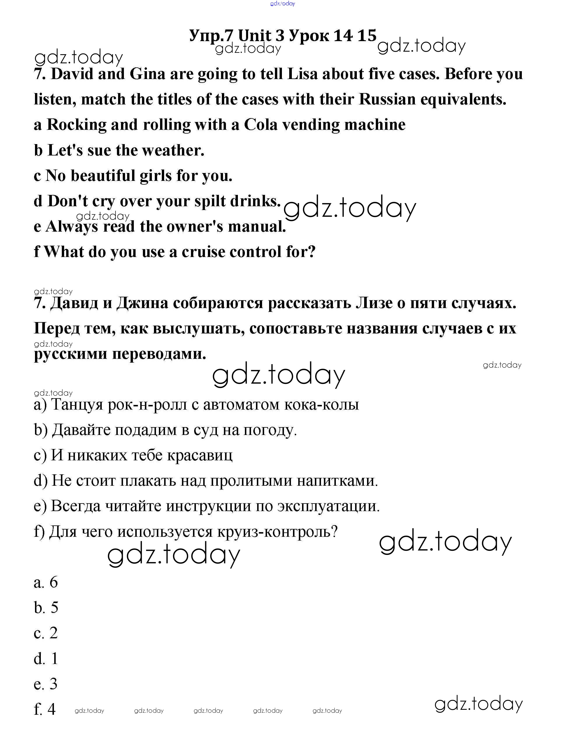 На страницах сайта gdz.today вы найдете учебный и вспомогательный материал, направленный на улучшения знаний школьной программы. ГДЗ - онлайн мир знаний Lesson 14-15 Решение к Unit 3 7 Учебнику по Английскому языку для 11 класса Кауфман Титул Happy English 2014
