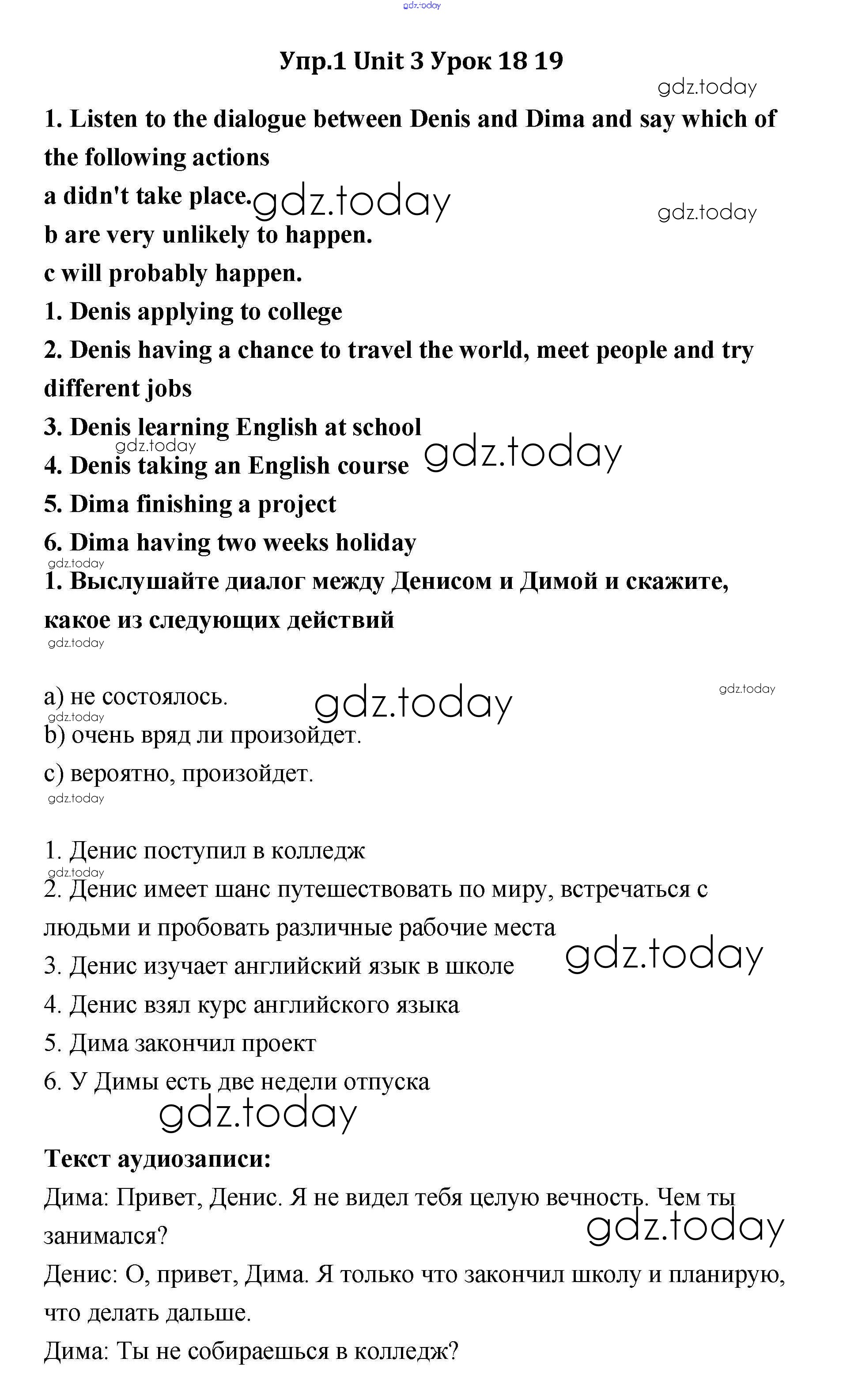 На страницах сайта gdz.today вы найдете учебный и вспомогательный материал, направленный на улучшения знаний школьной программы. ГДЗ - онлайн мир знаний Lesson 18-19 Решение к Unit 3 1 Учебнику по Английскому языку для 11 класса Кауфман Титул Happy English 2014