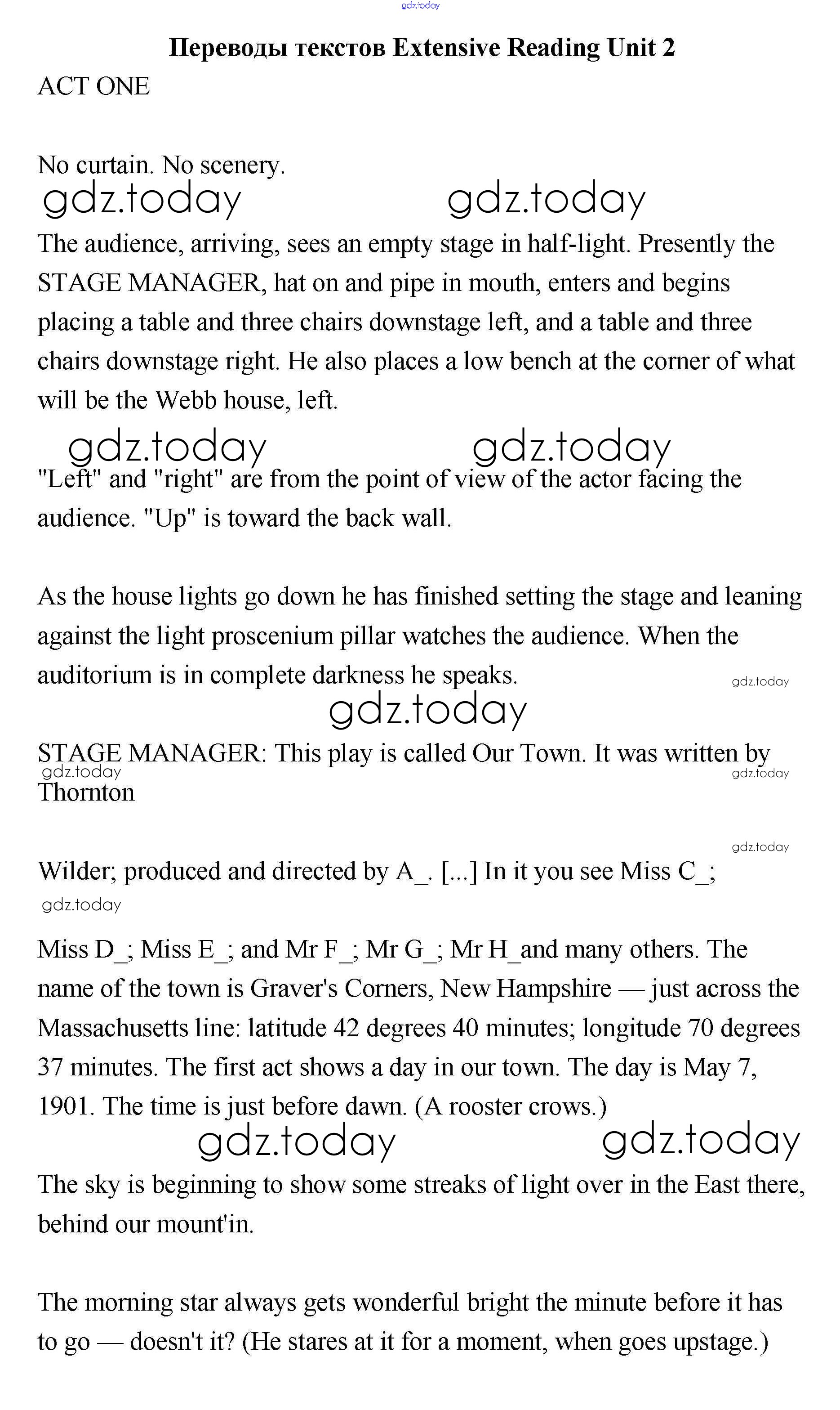 На страницах сайта gdz.today вы найдете учебный и вспомогательный материал, направленный на улучшения знаний школьной программы. ГДЗ - онлайн мир знаний People and places Решение к Extensive reading Переводы текстов Учебнику по Английскому языку для 11 класса Гроза, Дворецкая Титул New Millennium 2015