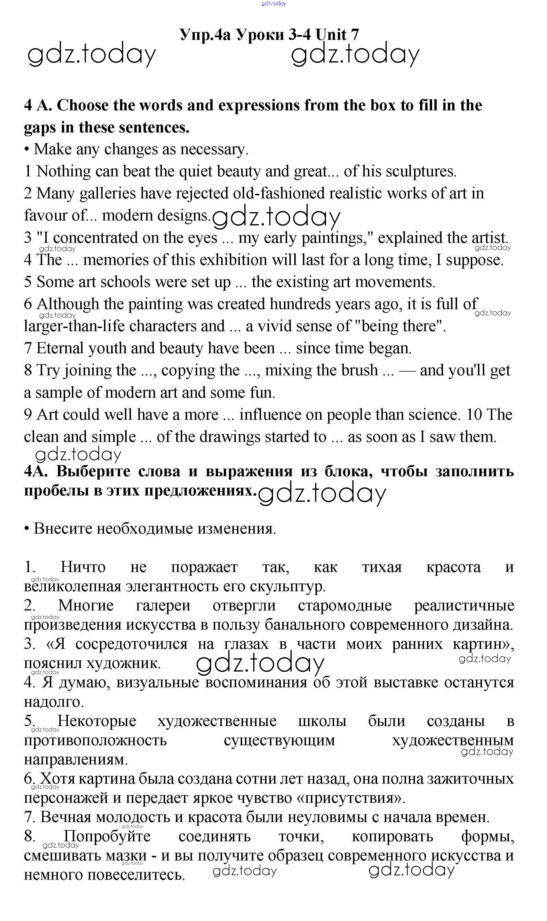 На страницах сайта gdz.today вы найдете учебный и вспомогательный материал, направленный на улучшения знаний школьной программы. ГДЗ - онлайн мир знаний lesson 3-4 Решение к Unit 7 4a Учебнику по Английскому языку для 11 класса Гроза, Дворецкая Титул New Millennium 2015