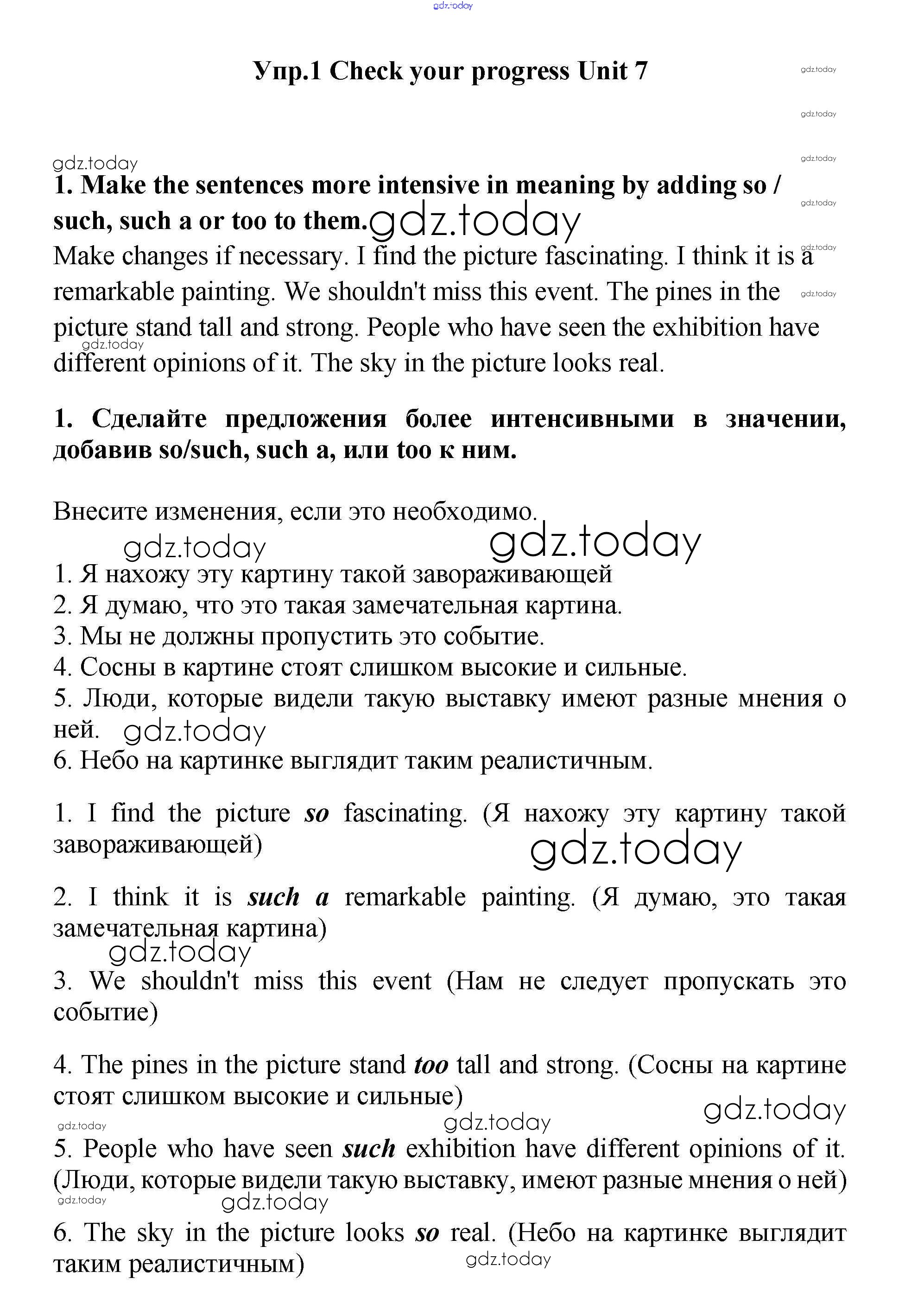 На страницах сайта gdz.today вы найдете учебный и вспомогательный материал, направленный на улучшения знаний школьной программы. ГДЗ - онлайн мир знаний Check your progress Решение к Unit 7 1 Учебнику по Английскому языку для 11 класса Гроза, Дворецкая Титул New Millennium 2015
