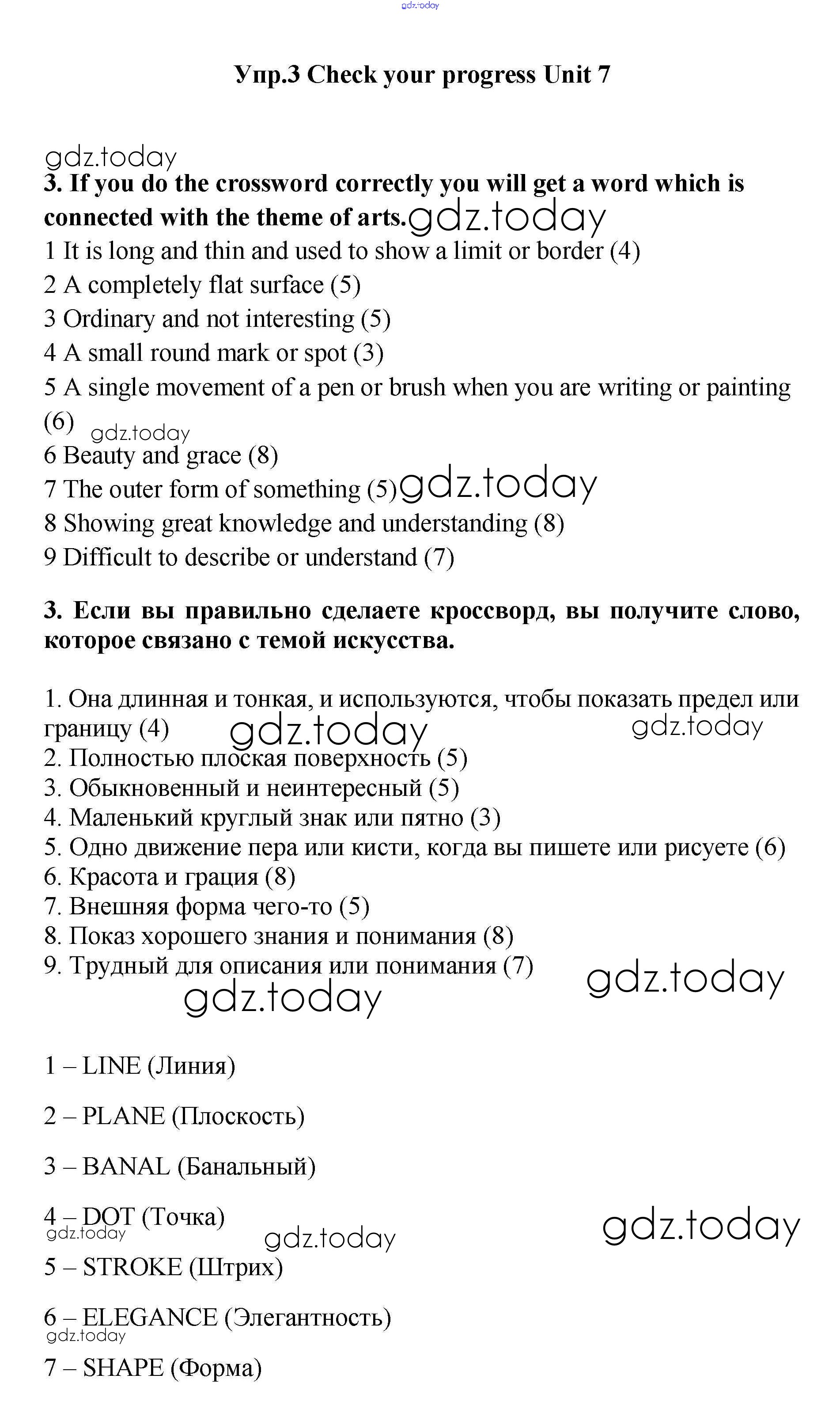 На страницах сайта gdz.today вы найдете учебный и вспомогательный материал, направленный на улучшения знаний школьной программы. ГДЗ - онлайн мир знаний Check your progress Решение к Unit 7 3 Учебнику по Английскому языку для 11 класса Гроза, Дворецкая Титул New Millennium 2015