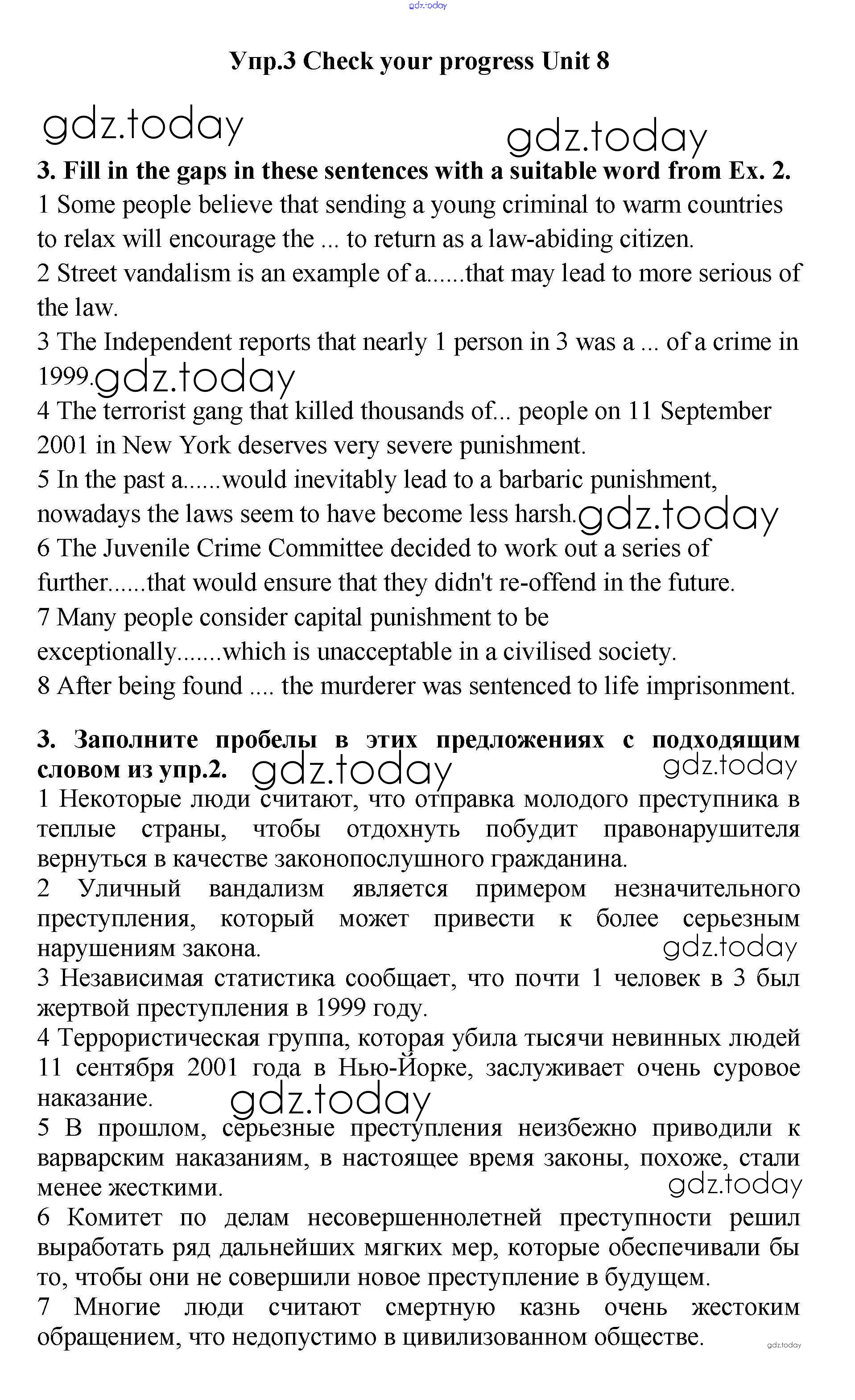 На страницах сайта gdz.today вы найдете учебный и вспомогательный материал, направленный на улучшения знаний школьной программы. ГДЗ - онлайн мир знаний Check your progress Решение к Unit 8 3 Учебнику по Английскому языку для 11 класса Гроза, Дворецкая Титул New Millennium 2015