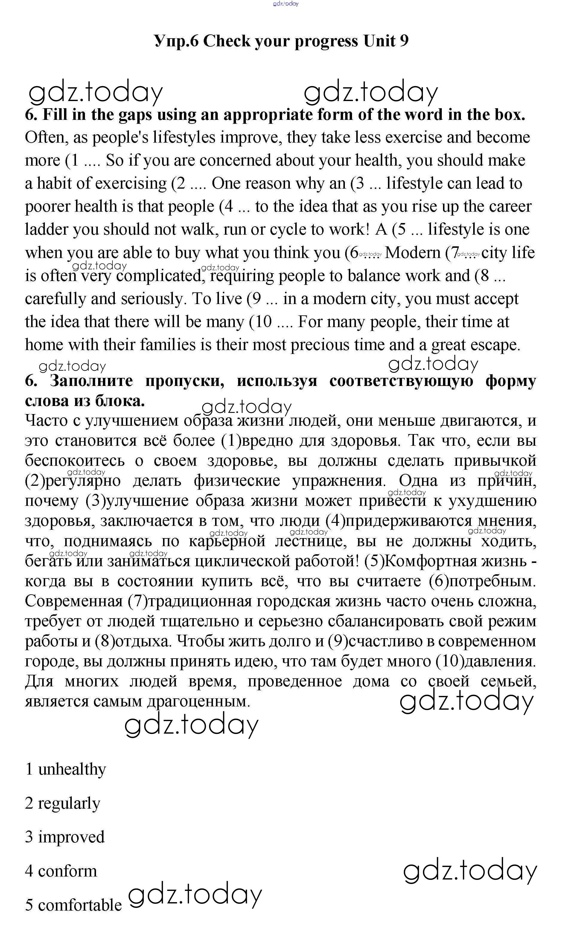 На страницах сайта gdz.today вы найдете учебный и вспомогательный материал, направленный на улучшения знаний школьной программы. ГДЗ - онлайн мир знаний Check your progress Решение к Unit 9 6 Учебнику по Английскому языку для 11 класса Гроза, Дворецкая  Титул New Millennium 2015