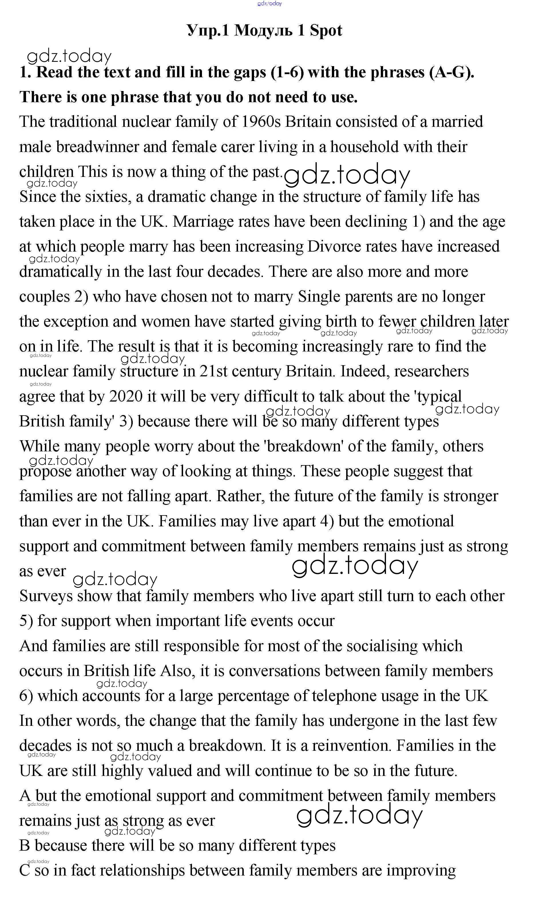 На страницах сайта gdz.today вы найдете учебный и вспомогательный материал, направленный на улучшения знаний школьной программы. ГДЗ - онлайн мир знаний Spotlight on Exams Решение. Module 1 1 Рабочей тетради по Английскому языку для 11 класса Эванс, Афанасьева Просвещение Spotlight 2015