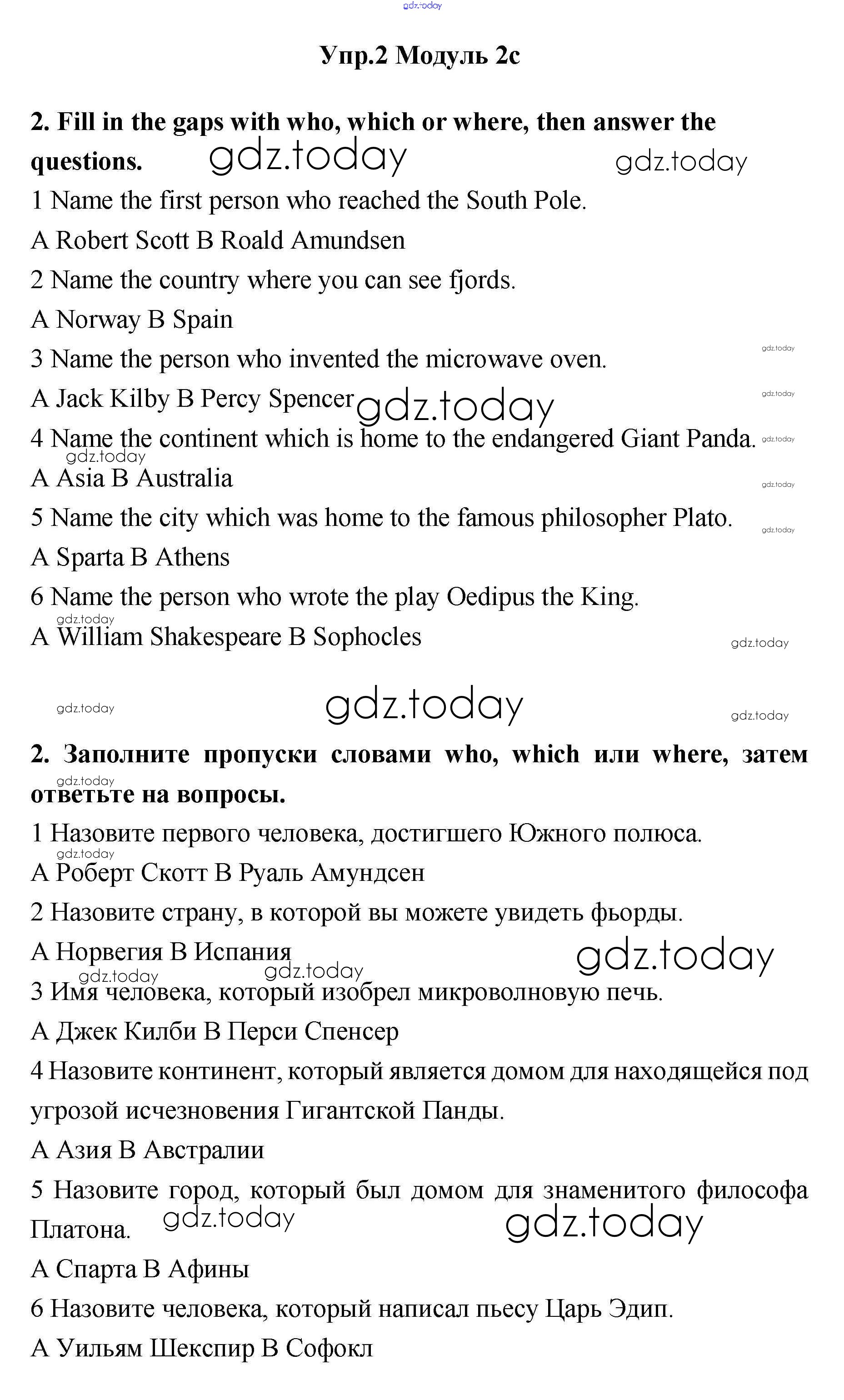 На страницах сайта gdz.today вы найдете учебный и вспомогательный материал, направленный на улучшения знаний школьной программы. ГДЗ - онлайн мир знаний Часть 2c Решение к Module 2 2 Рабочей тетради по Английскому языку для 11 класса Эванс, Афанасьева Просвещение Spotlight 2015