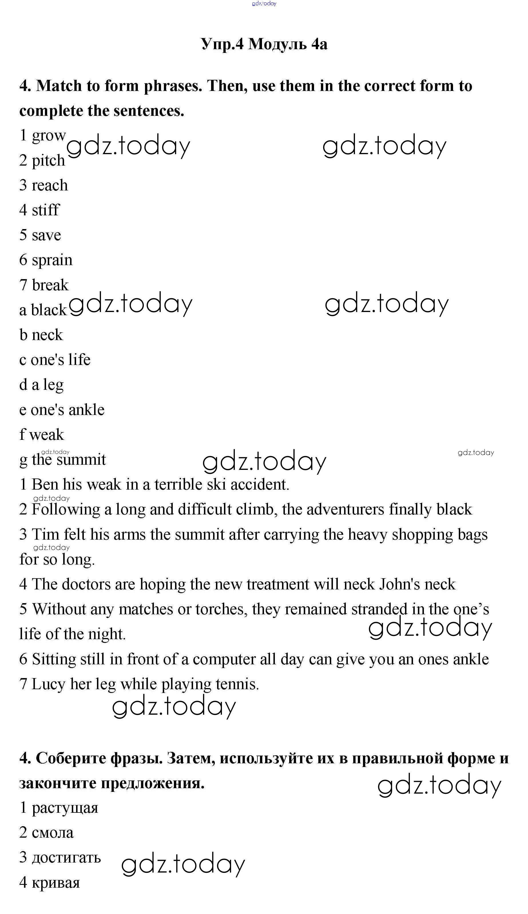На страницах сайта gdz.today вы найдете учебный и вспомогательный материал, направленный на улучшения знаний школьной программы. ГДЗ - онлайн мир знаний Часть 4a Решение к Module 4 4 Рабочей тетради по Английскому языку для 11 класса Эванс, Афанасьева  Просвещение Spotlight 2015