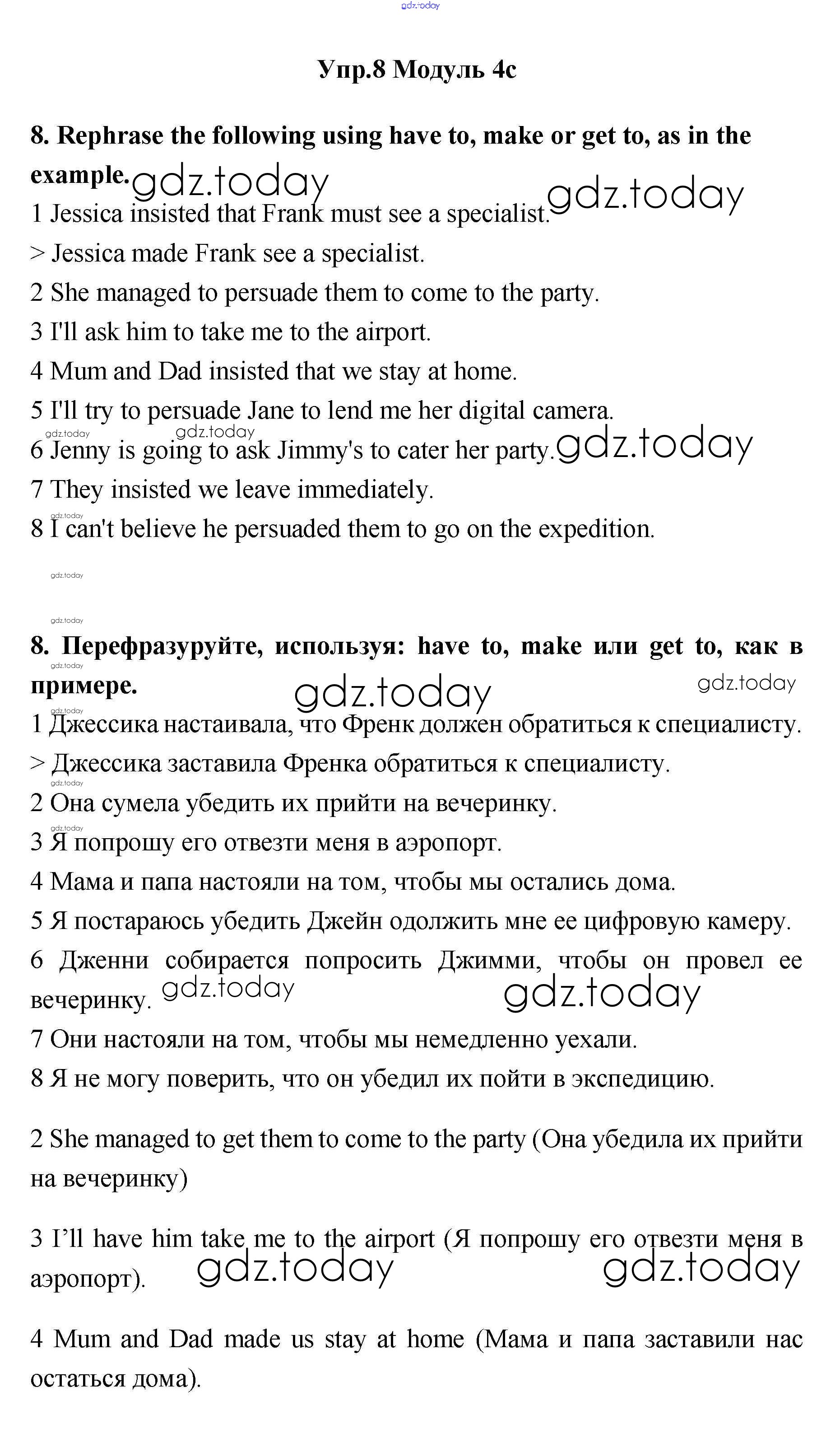 На страницах сайта gdz.today вы найдете учебный и вспомогательный материал, направленный на улучшения знаний школьной программы. ГДЗ - онлайн мир знаний Часть 4c Решение к Module 4 8 Рабочей тетради по Английскому языку для 11 класса Эванс, Афанасьева Просвещение Spotlight 2015