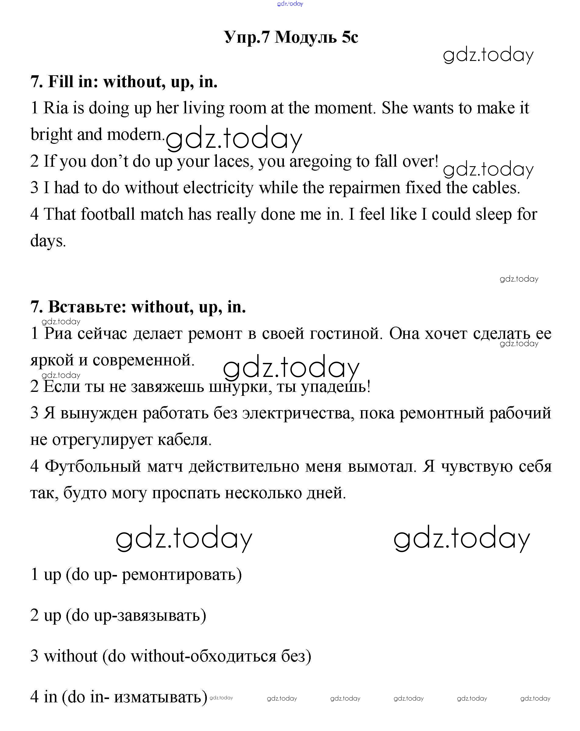 На страницах сайта gdz.today вы найдете учебный и вспомогательный материал, направленный на улучшения знаний школьной программы. ГДЗ - онлайн мир знаний Часть 5c Решение к Module 5 7 Рабочей тетради по Английскому языку для 11 класса Эванс, Афанасьева Просвещение Spotlight 2015