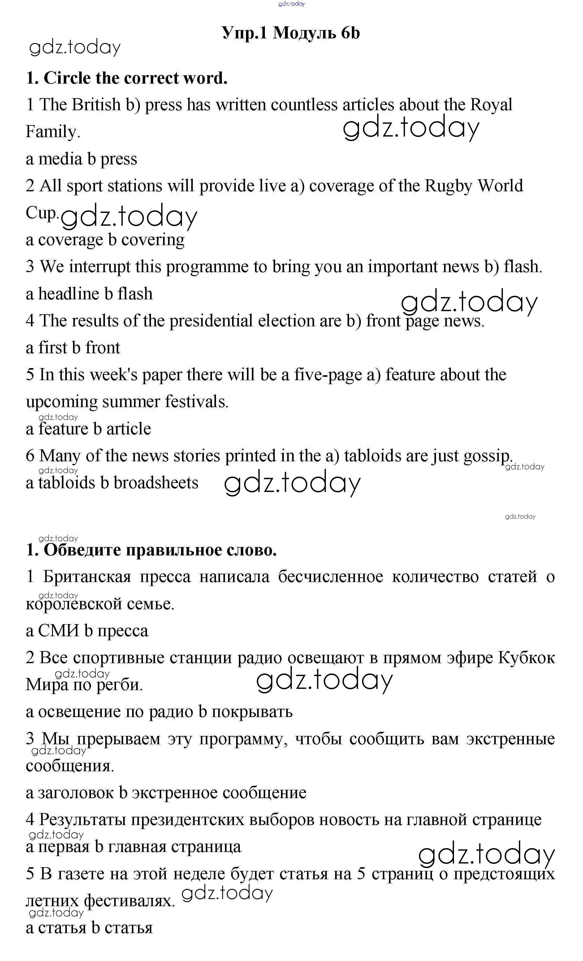 На страницах сайта gdz.today вы найдете учебный и вспомогательный материал, направленный на улучшения знаний школьной программы. ГДЗ - онлайн мир знаний Часть 6b Решение к Module 6 1 Рабочей тетради по Английскому языку для 11 класса Эванс, Афанасьева Просвещение Spotlight 2015