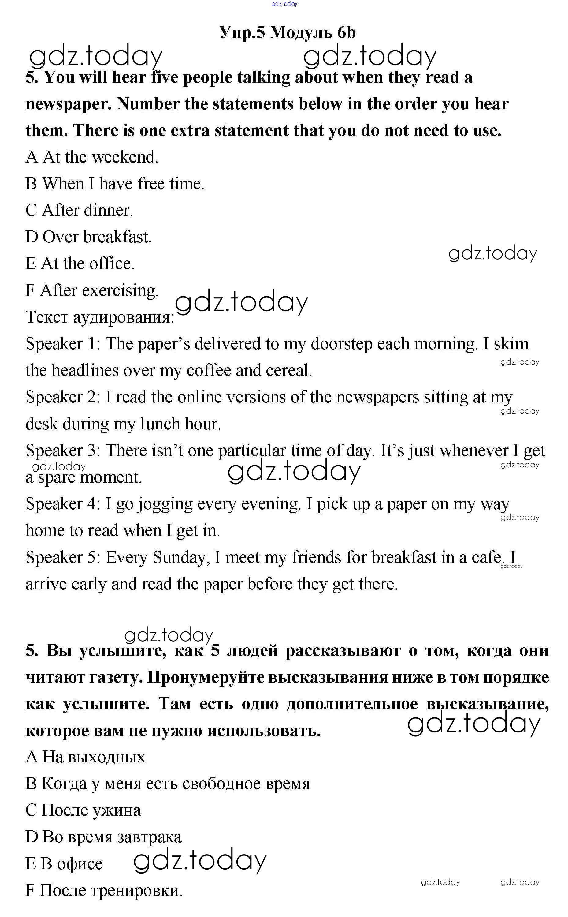 На страницах сайта gdz.today вы найдете учебный и вспомогательный материал, направленный на улучшения знаний школьной программы. ГДЗ - онлайн мир знаний Часть 6b Решение к Module 6 5 Рабочей тетради по Английскому языку для 11 класса Эванс, Афанасьева Просвещение Spotlight 2015