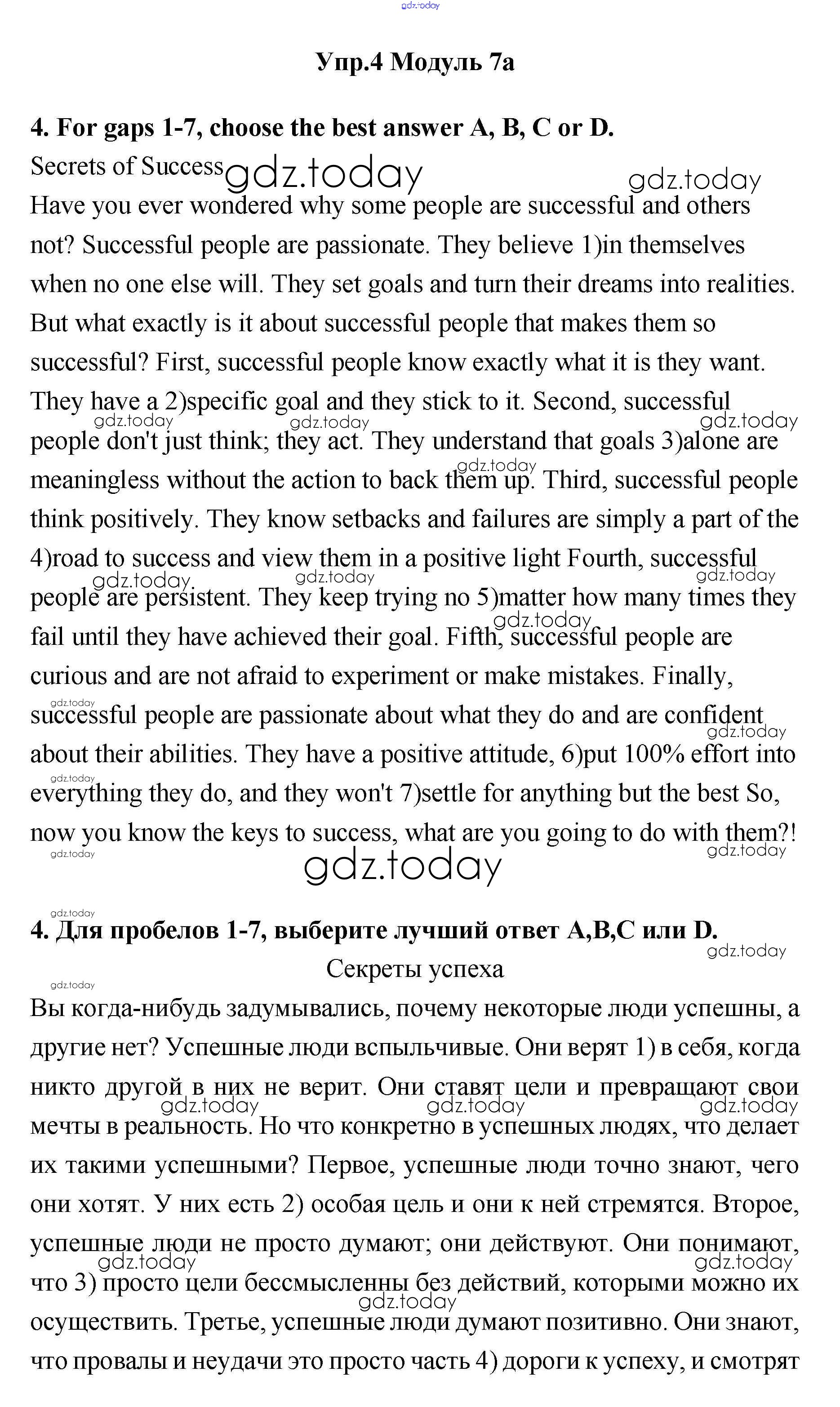 На страницах сайта gdz.today вы найдете учебный и вспомогательный материал, направленный на улучшения знаний школьной программы. ГДЗ - онлайн мир знаний Часть 7a Решение к Module 7 4 Рабочей тетради по Английскому языку для 11 класса Эванс, Афанасьева  Просвещение Spotlight 2015