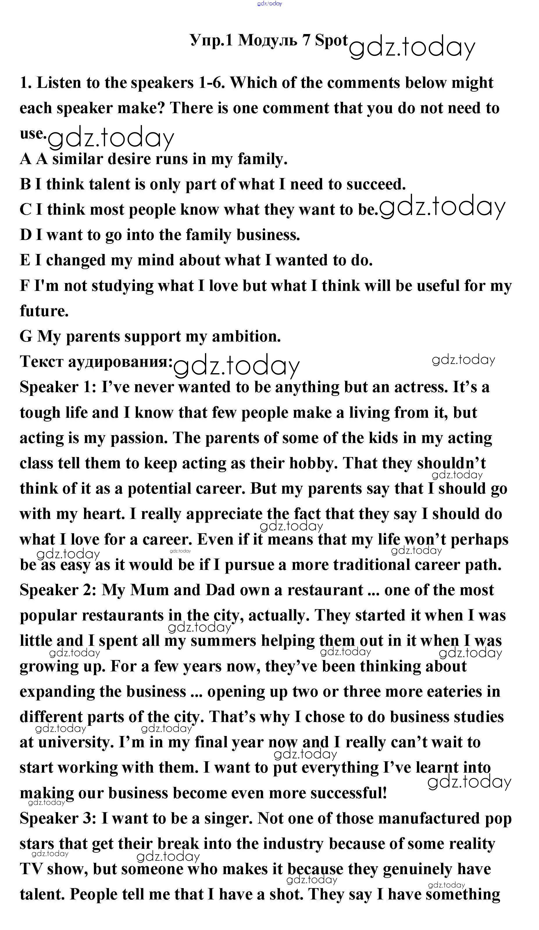 На страницах сайта gdz.today вы найдете учебный и вспомогательный материал, направленный на улучшения знаний школьной программы. ГДЗ - онлайн мир знаний Spotlight on Exams Решение к Module 7 1 Рабочей тетради по Английскому языку для 11 класса Эванс, Афанасьева  Просвещение Spotlight 2015