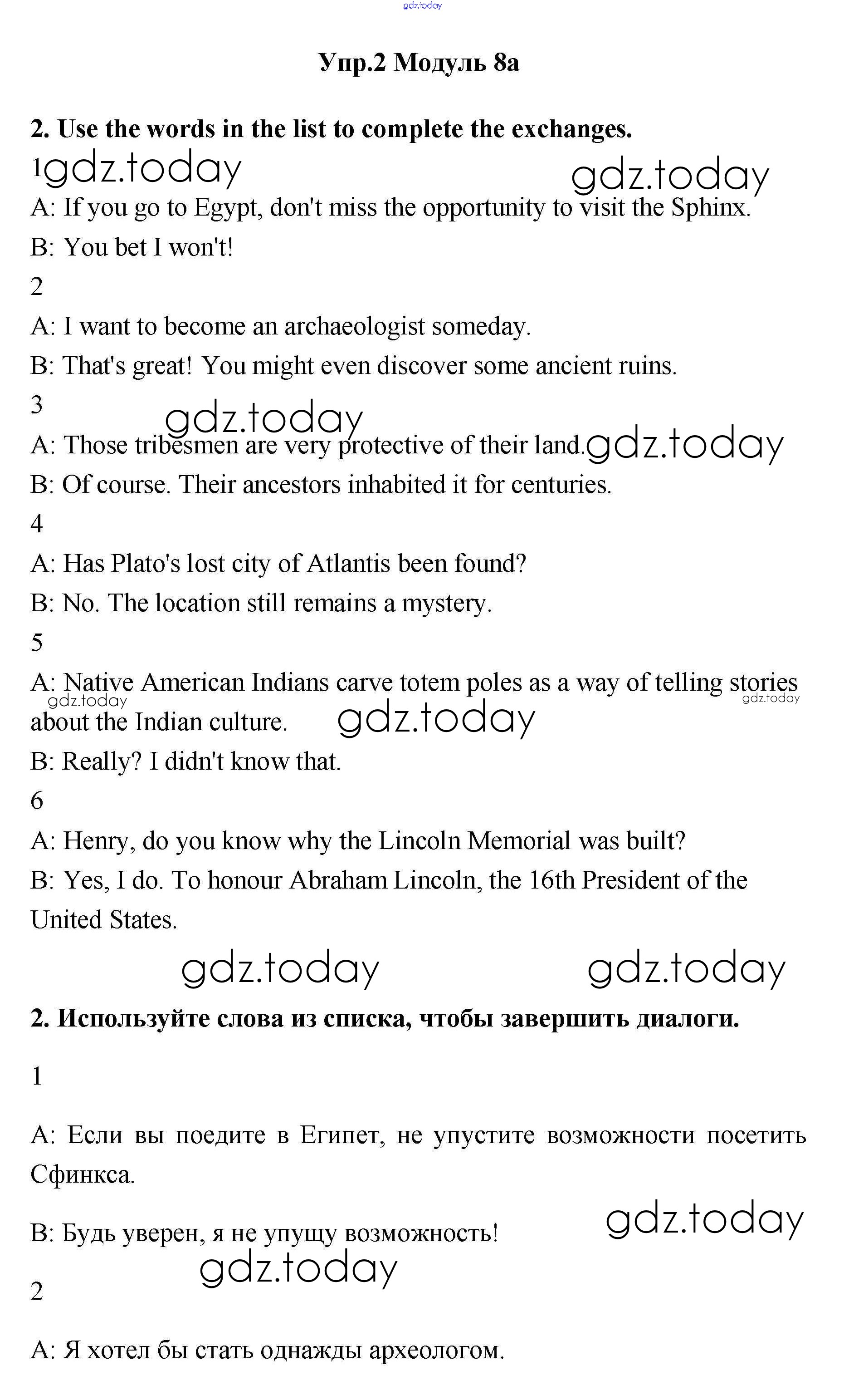 На страницах сайта gdz.today вы найдете учебный и вспомогательный материал, направленный на улучшения знаний школьной программы. ГДЗ - онлайн мир знаний Часть 8a Решение к Module 8 2 Рабочей тетради по Английскому языку для 11 класса Эванс, Афанасьева  Просвещение Spotlight 2015
