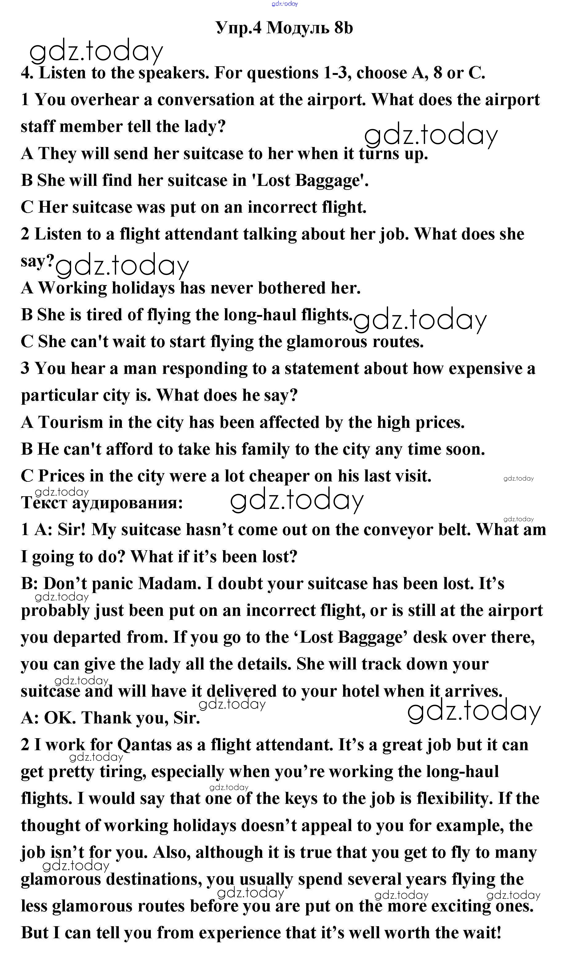 На страницах сайта gdz.today вы найдете учебный и вспомогательный материал, направленный на улучшения знаний школьной программы. ГДЗ - онлайн мир знаний Часть 8b Решение к Module 8 4 Рабочей тетради по Английскому языку для 11 класса Эванс, Афанасьева Просвещение Spotlight 2015