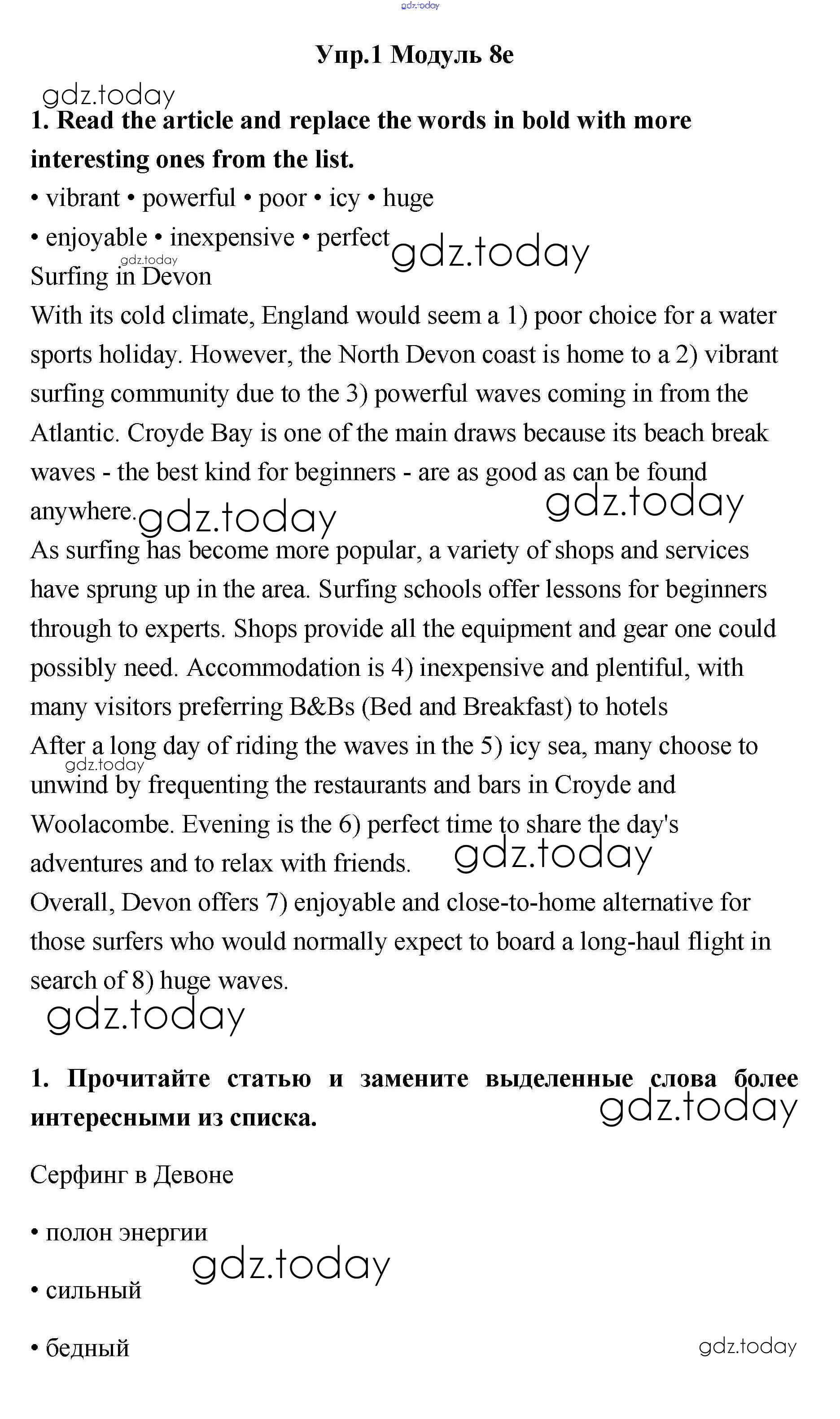 На страницах сайта gdz.today вы найдете учебный и вспомогательный материал, направленный на улучшения знаний школьной программы. ГДЗ - онлайн мир знаний Часть 8e Решение к Module 8 1 Рабочей тетради по Английскому языку для 11 класса Эванс, Афанасьева Просвещение Spotlight 2015