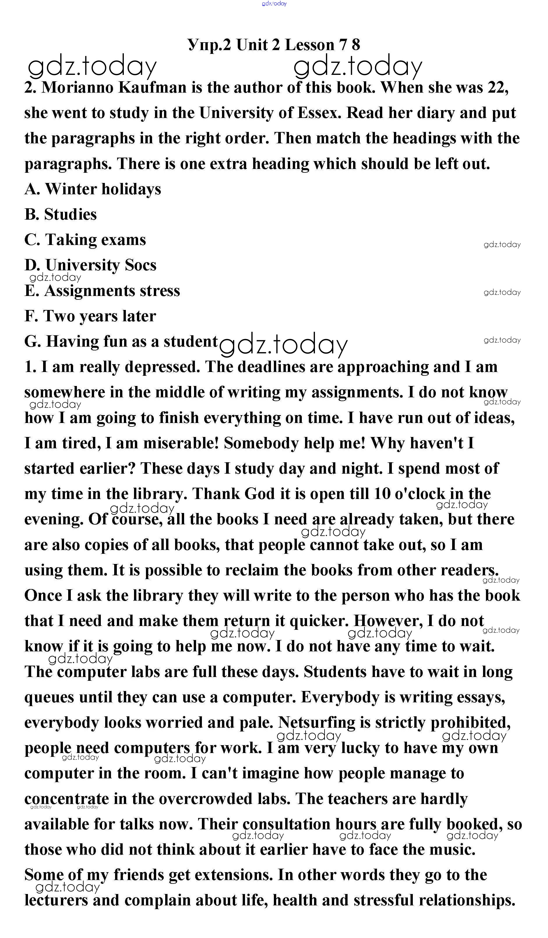 На страницах сайта gdz.today вы найдете учебный и вспомогательный материал, направленный на улучшения знаний школьной программы. ГДЗ - онлайн мир знаний Lesson 7, 8 Решение к Unit 2 2 Рабочей тетради по Английскому языку для 11 класса Кауфман Титул Happy English 2014