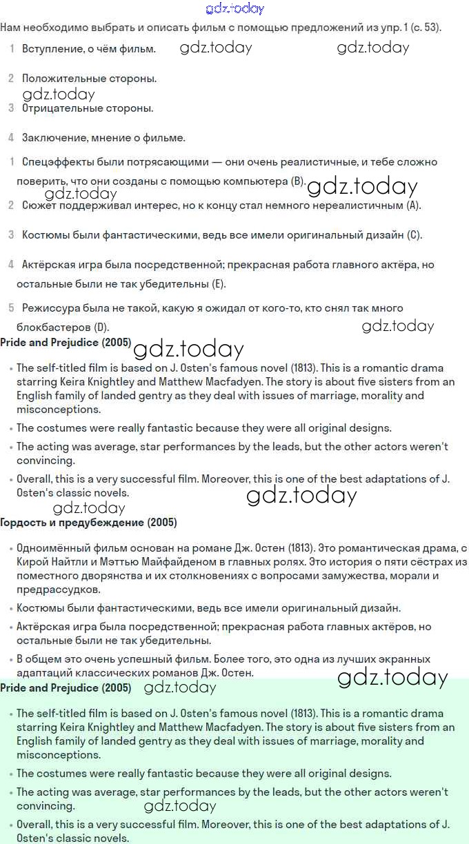 На страницах сайта gdz.today вы найдете учебный и вспомогательный материал, направленный на улучшения знаний школьной программы. ГДЗ - онлайн мир знаний Решение. Страницы  53 Рабочей тетради по Английскому языку для 11 класса Комарова, Ларионова Базовый уровень Русское слово Инновационная школа 2020