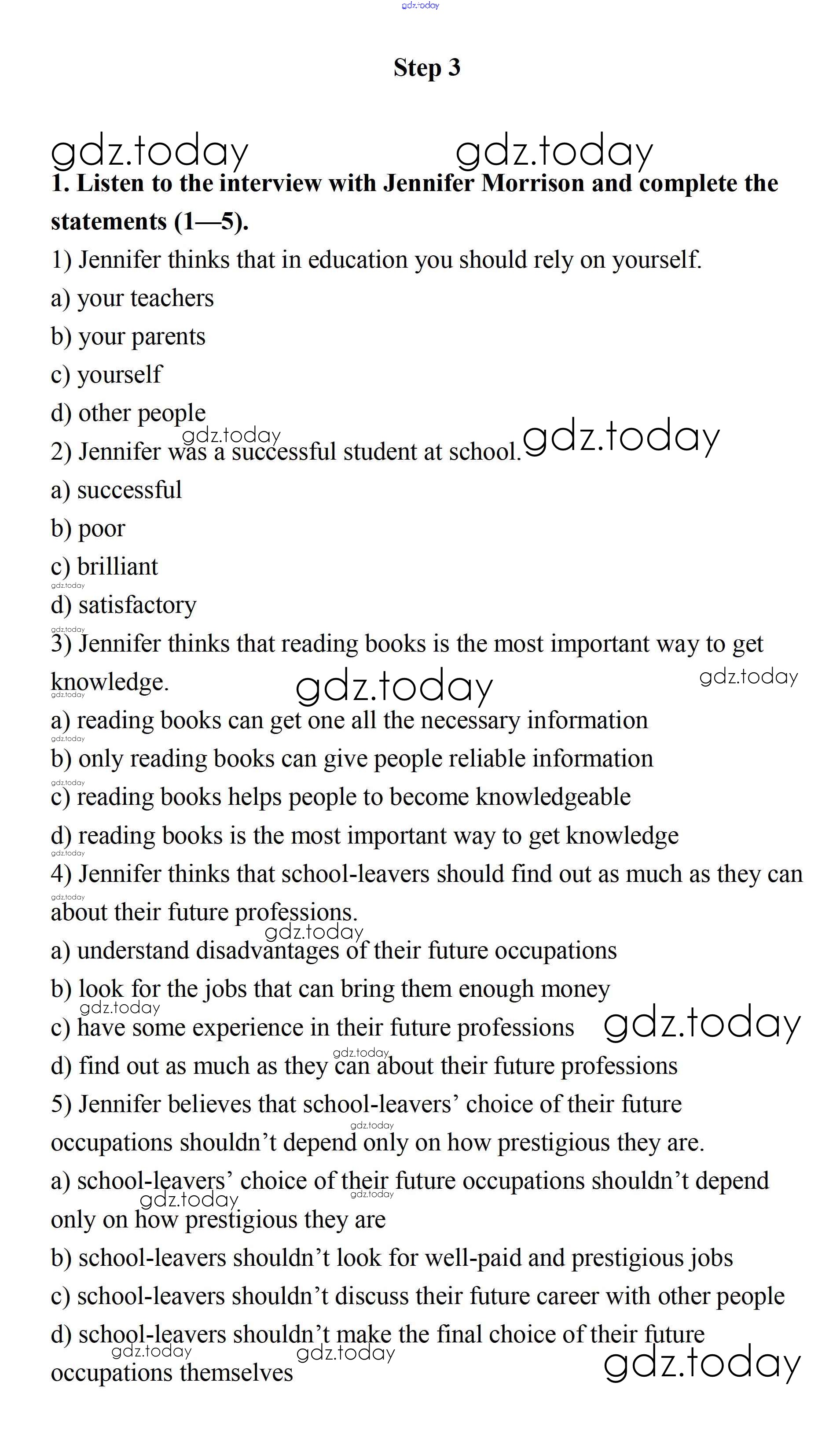 На страницах сайта gdz.today вы найдете учебный и вспомогательный материал, направленный на улучшения знаний школьной программы. ГДЗ - онлайн мир знаний Step 3 Решение. Unit 1. Steps to your career 1 Учебнику по Английскому языку для 11 класса Афанасьева, Михеева Базовый уровень Дрофа, Просвещение Rainbow 2017, 2021