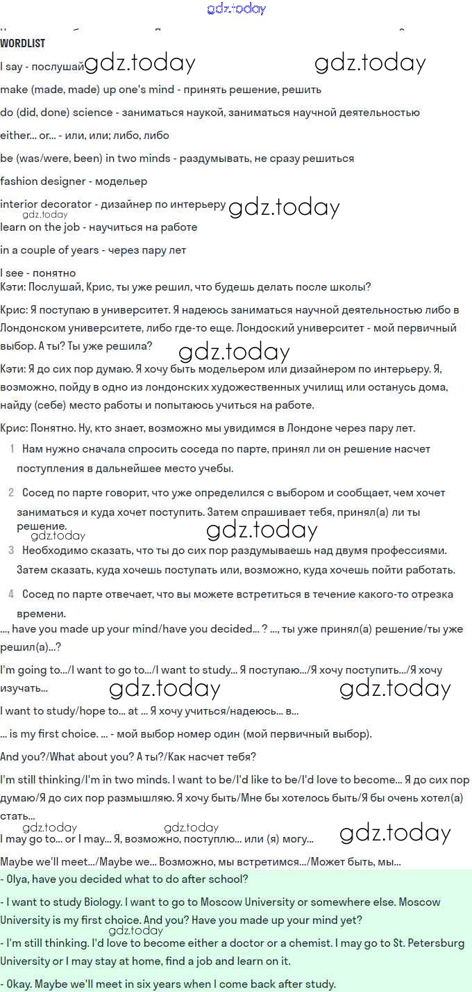 На страницах сайта gdz.today вы найдете учебный и вспомогательный материал, направленный на улучшения знаний школьной программы. ГДЗ - онлайн мир знаний Step 3 Решение. Unit 1. Steps to your career 2 Учебнику по Английскому языку для 11 класса Афанасьева, Михеева Базовый уровень Дрофа, Просвещение Rainbow 2017, 2021