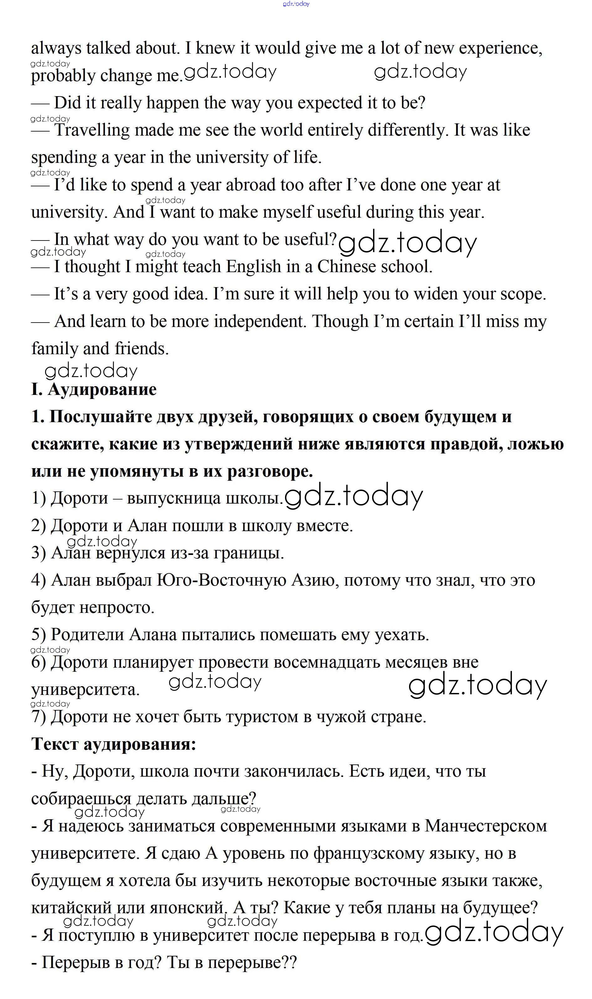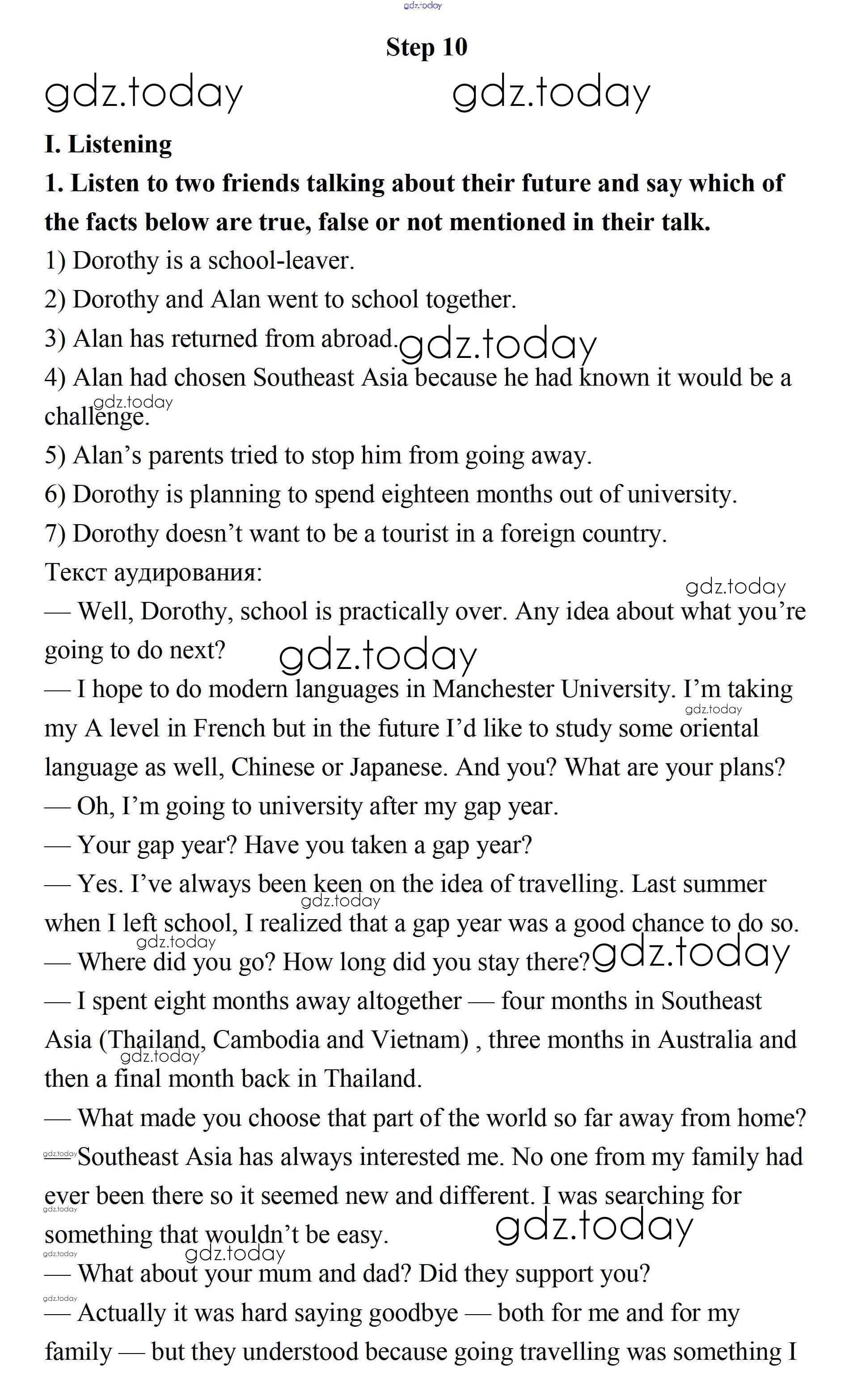 На страницах сайта gdz.today вы найдете учебный и вспомогательный материал, направленный на улучшения знаний школьной программы. ГДЗ - онлайн мир знаний Step 10 Решение. Unit 4. Steps to the future 1 Учебнику по Английскому языку для 11 класса Афанасьева, Михеева Базовый уровень Дрофа, Просвещение Rainbow 2017, 2021