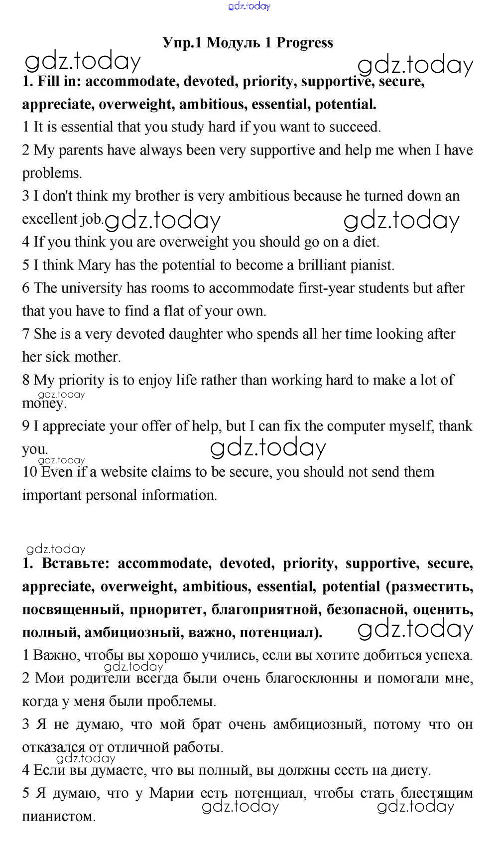 На страницах сайта gdz.today вы найдете учебный и вспомогательный материал, направленный на улучшения знаний школьной программы. ГДЗ - онлайн мир знаний Progress Check Решение к Module 1 1 Учебнику по Английскому языку для 11 класса Эванс, Дули Просвещение Spotlight 2015