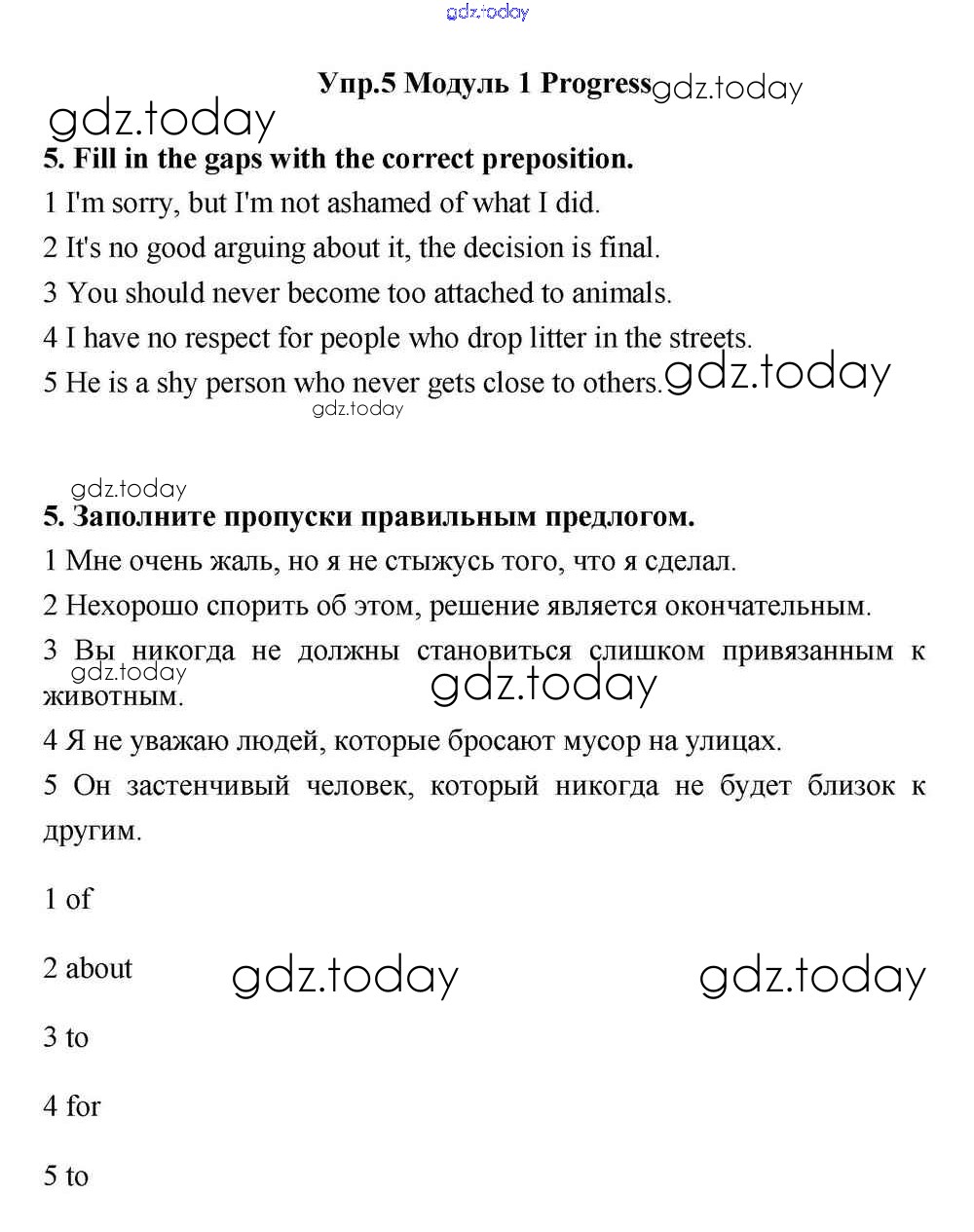 На страницах сайта gdz.today вы найдете учебный и вспомогательный материал, направленный на улучшения знаний школьной программы. ГДЗ - онлайн мир знаний Progress Check Решение к Module 1 5 Учебнику по Английскому языку для 11 класса Эванс, Дули Просвещение Spotlight 2015