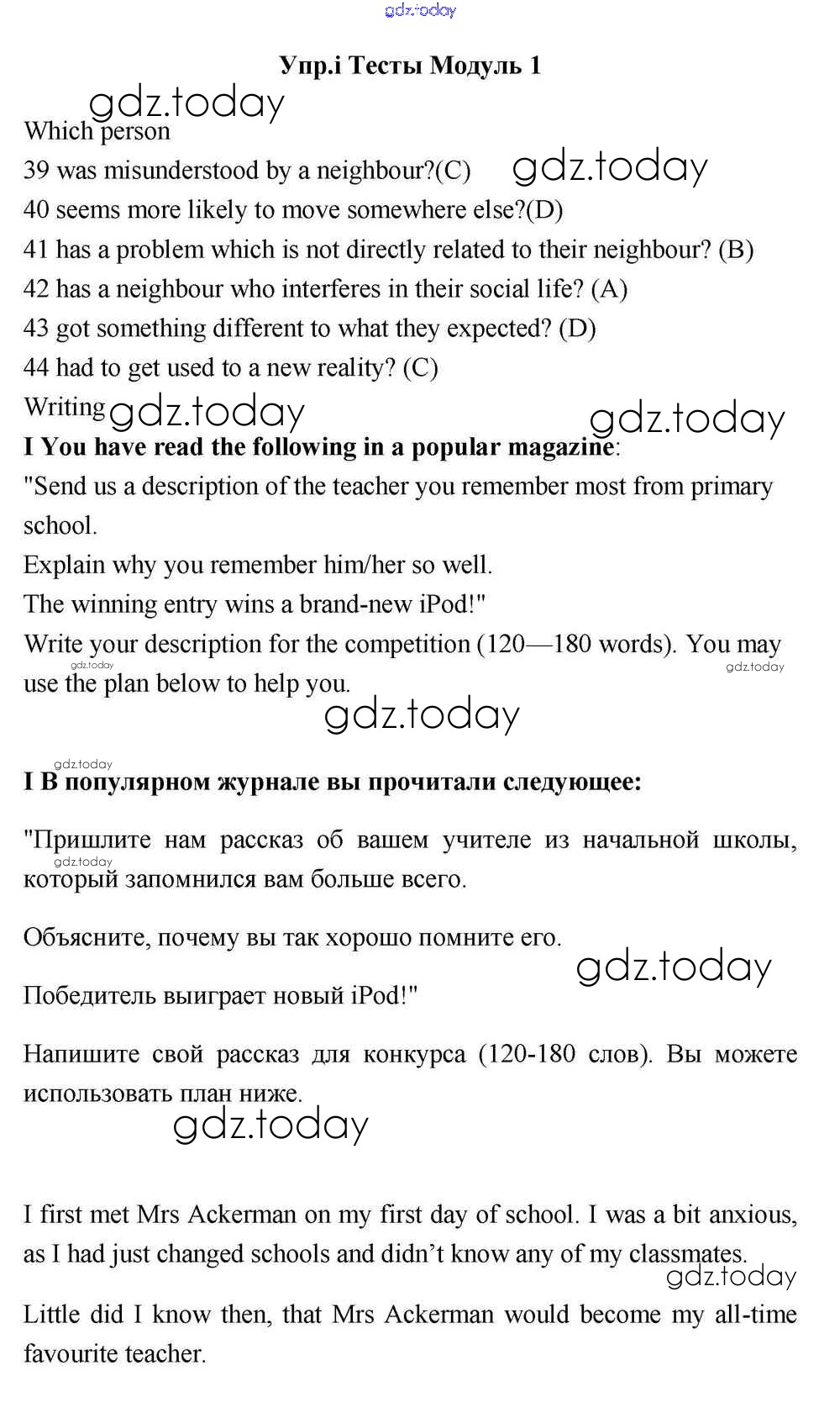 На страницах сайта gdz.today вы найдете учебный и вспомогательный материал, направленный на улучшения знаний школьной программы. ГДЗ - онлайн мир знаний Тесты Решение к Module 1 I Учебнику по Английскому языку для 11 класса Эванс, Дули  Просвещение Spotlight 2015