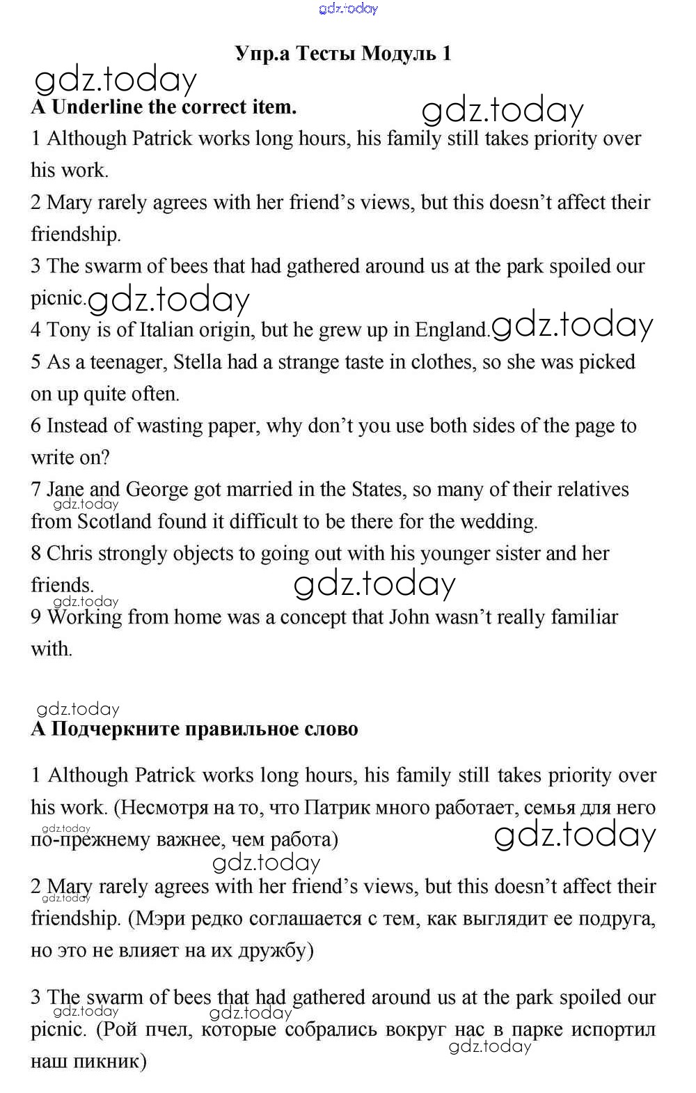 Ответы к Тесты Решение к Module 1 A Учебнику по Английскому языку для 11 класса Эванс, Дули Просвещение Spotlight 2015