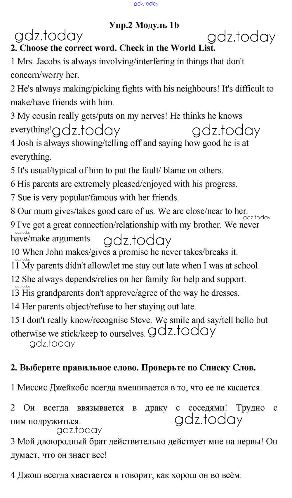 На страницах сайта gdz.today вы найдете учебный и вспомогательный материал, направленный на улучшения знаний школьной программы. ГДЗ - онлайн мир знаний Часть 1b Решение к Module 1 2 Учебнику по Английскому языку для 11 класса Эванс, Дули  Просвещение Spotlight 2015