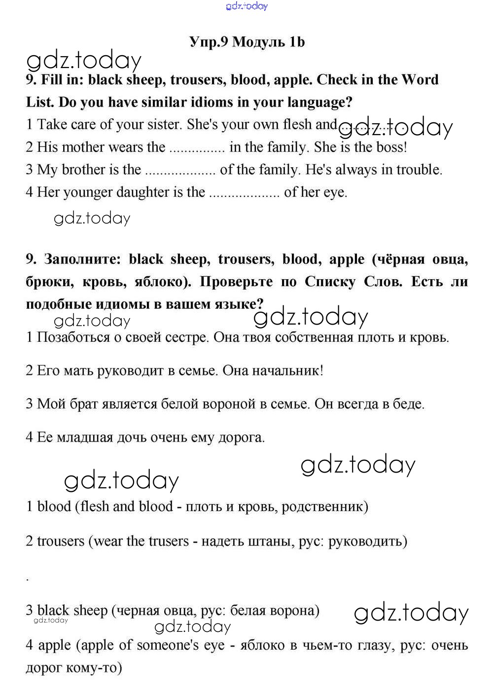 На страницах сайта gdz.today вы найдете учебный и вспомогательный материал, направленный на улучшения знаний школьной программы. ГДЗ - онлайн мир знаний Часть 1b Решение к Module 1 9 Учебнику по Английскому языку для 11 класса Эванс, Дули Просвещение Spotlight 2015