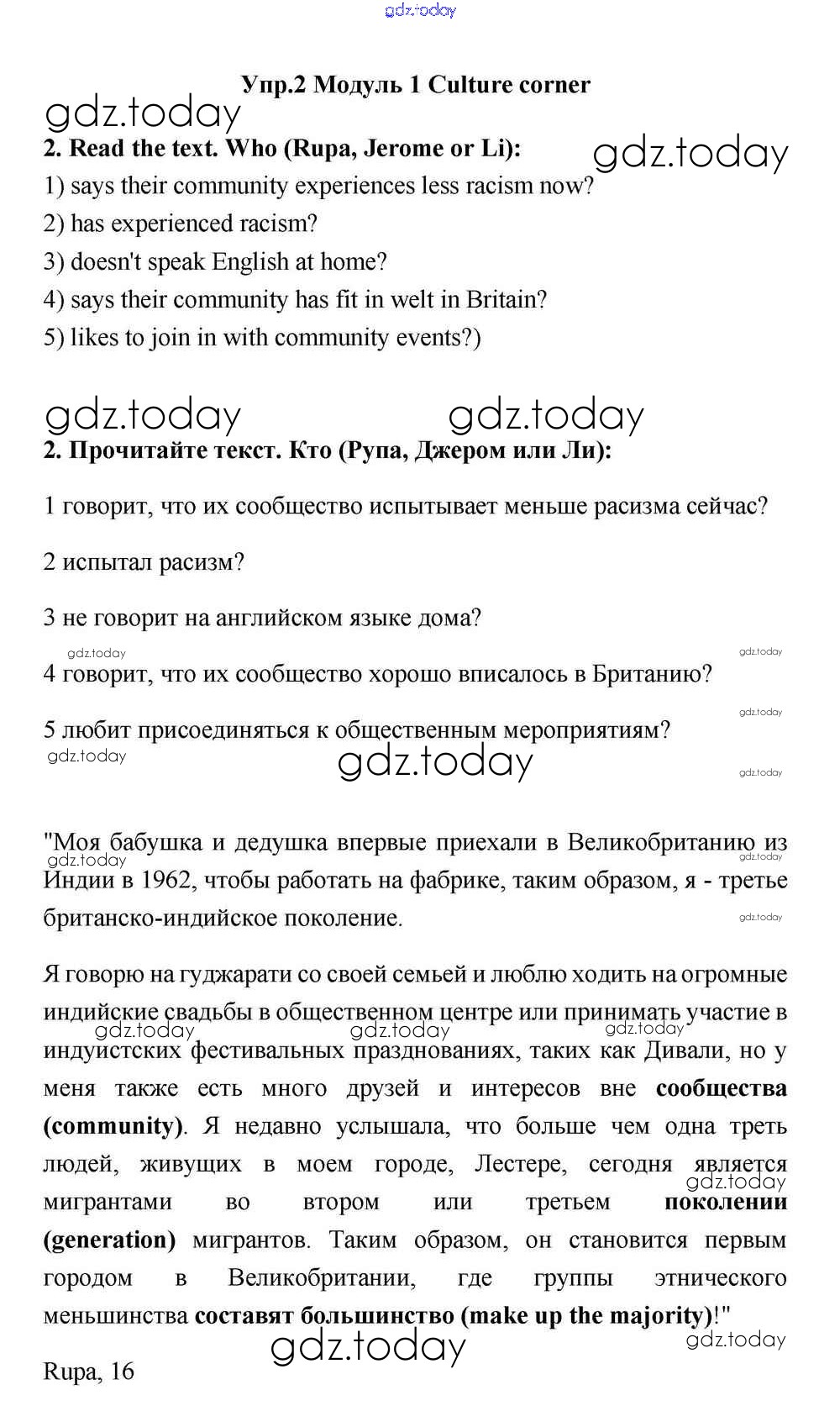 На страницах сайта gdz.today вы найдете учебный и вспомогательный материал, направленный на улучшения знаний школьной программы. ГДЗ - онлайн мир знаний Culture corner Решение к Module 1 2 Учебнику по Английскому языку для 11 класса Эванс, Дули Просвещение Spotlight 2015