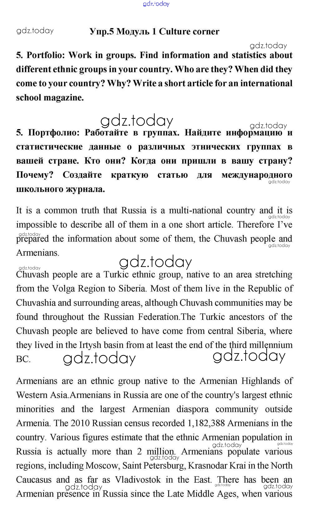 На страницах сайта gdz.today вы найдете учебный и вспомогательный материал, направленный на улучшения знаний школьной программы. ГДЗ - онлайн мир знаний Culture corner Решение к Module 1 5 Учебнику по Английскому языку для 11 класса Эванс, Дули  Просвещение Spotlight 2015
