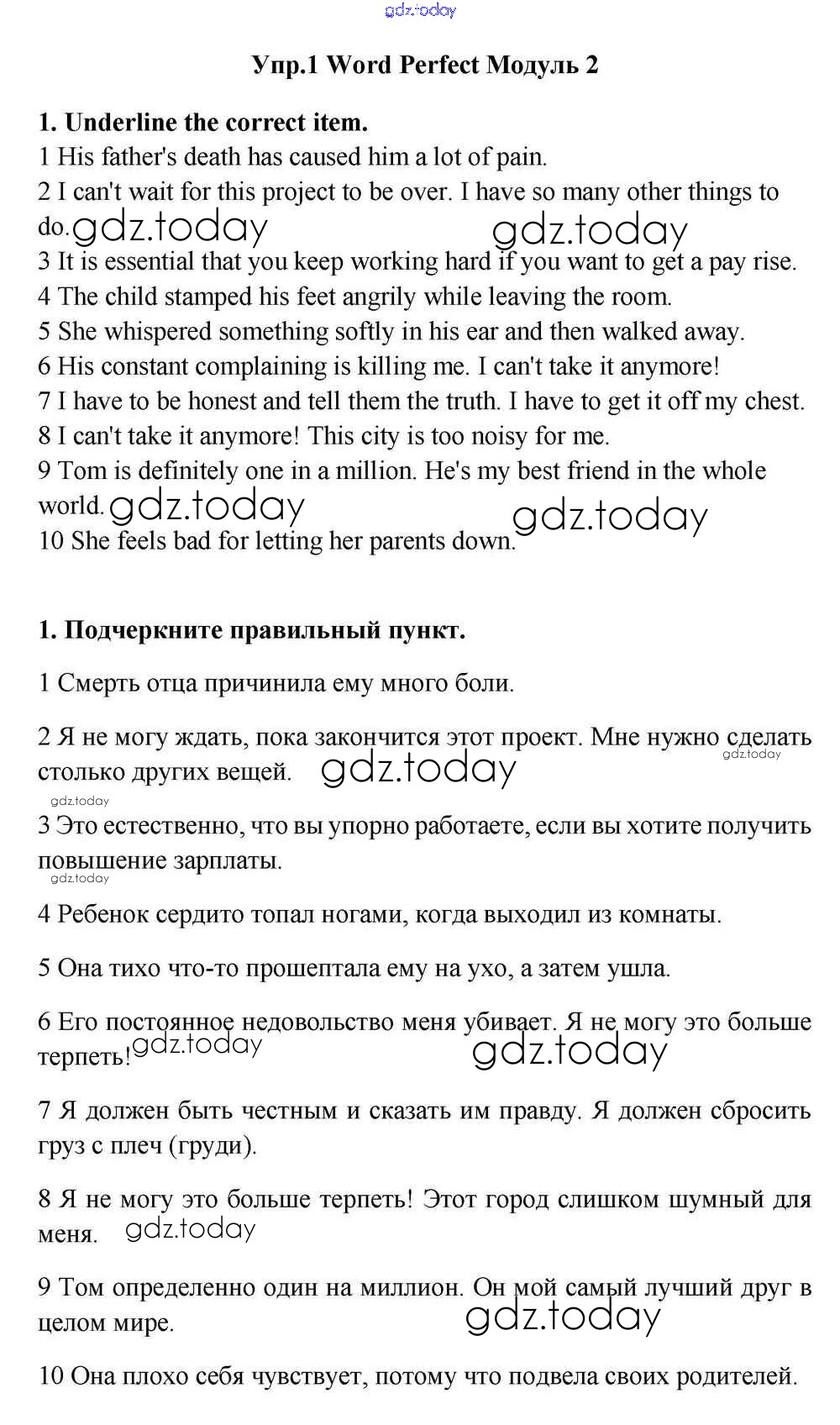 На страницах сайта gdz.today вы найдете учебный и вспомогательный материал, направленный на улучшения знаний школьной программы. ГДЗ - онлайн мир знаний Module 2 Решение к Work Perfect 1 Учебнику по Английскому языку для 11 класса Эванс, Дули  Просвещение Spotlight 2015