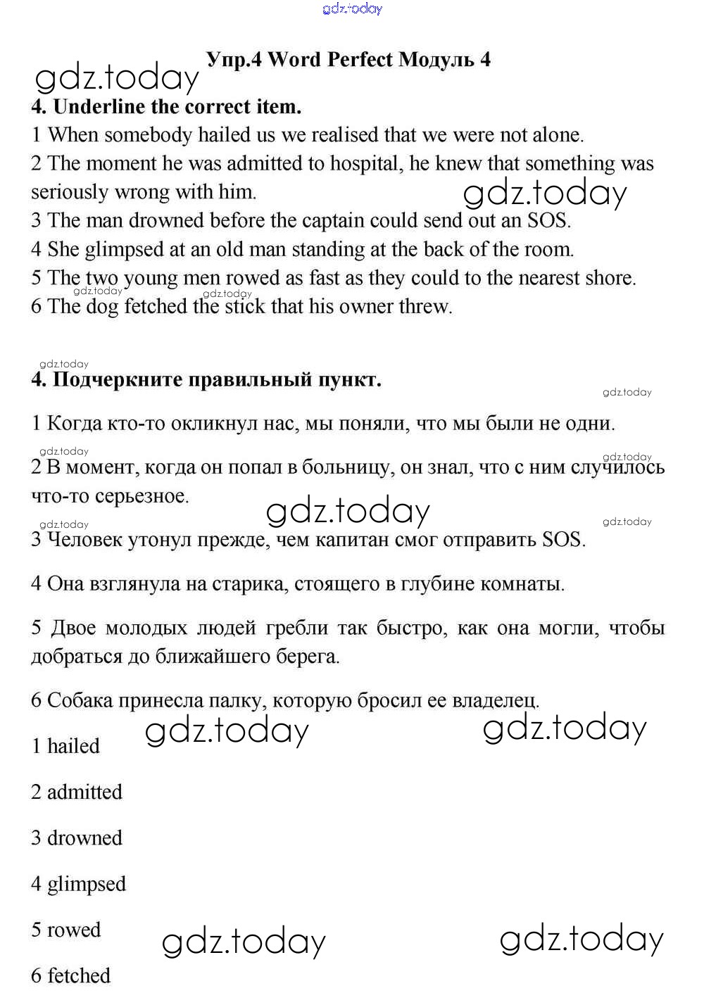 На страницах сайта gdz.today вы найдете учебный и вспомогательный материал, направленный на улучшения знаний школьной программы. ГДЗ - онлайн мир знаний Module 4 Решение к Work Perfect 4 Учебнику по Английскому языку для 11 класса Эванс, Дули Просвещение Spotlight 2015